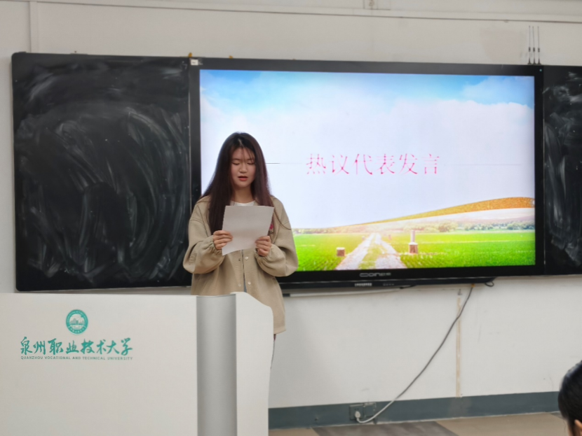 八方书院学生会主席团成员郑奕翔围绕“学习习近平总书记贺信精神,弘扬志愿服务文化”理论学习会核心主题,梳理贺信精神要点,解读志愿服务的时代价值与实践方向。他结合自身经历分享感悟:以书院组织的志愿服务活动为例,点明践行贺信精神需从身边小事做起,用实际行动传递温暖;引用贺信中“弘扬奉献、友爱、互助、进步的志愿精神”的嘱托,再次强调深化志愿服务文化的重要意义;以学校打造的“校园公益服务岗”实践平台为例,倡导同学们将志愿精神融入日常,以青春力量践行贺信精神。