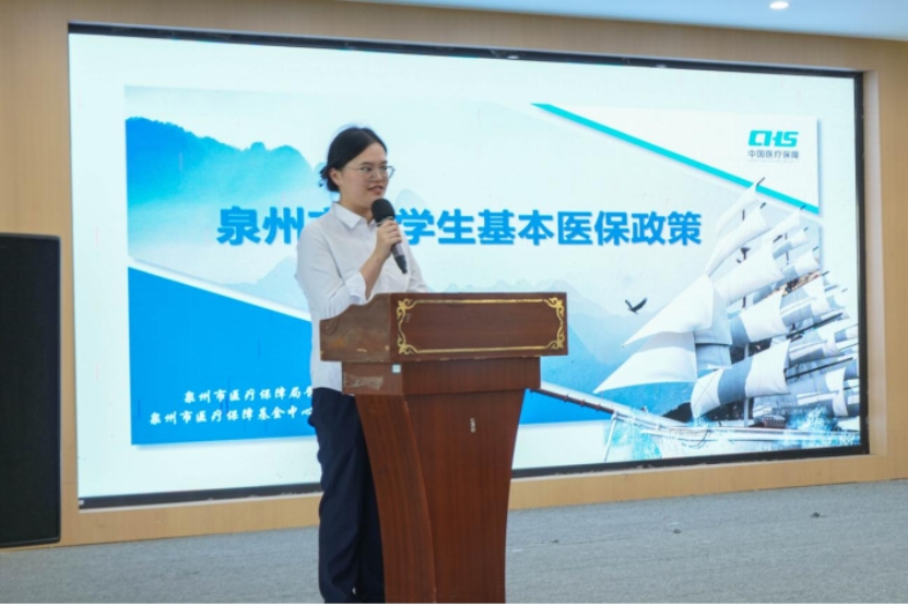 本次宣讲活动由医保中心工作人员曾华颖老师担任主讲嘉宾。宣讲内容聚焦 2026年度在泉大学生医保全流程要点,从基础政策入手,清晰界定参保范围、明确缴费标准、说明待遇享受时间,为同学们搭建起医保政策的基本认知框架;再深入实操层面,详细拆解门诊挂号报销、住院费用结算等具体流程,搭配实例讲解报销材料准备、申请步骤等关键细节,确保同学们不仅 “晓政策”,更 “用医保”。