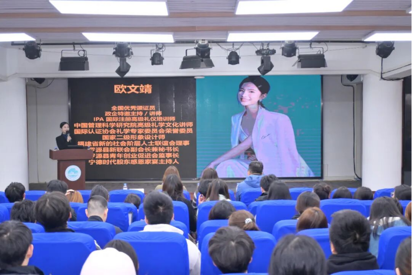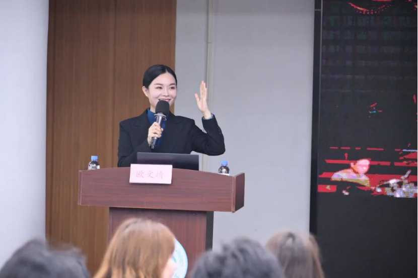 在分享环节,欧文靖回顾自己在校时光。求学期间,她始终满怀热忱、积极投身校园生活,不仅加入广播台、校艺术团、国标舞社团、吉他社团等多个学生组织锻炼自我,还踊跃报名参加唱歌、跳舞、模特等各类比赛。丰富的校园实践为她拓宽成长空间,也让她在一次次历练中变得愈发自信从容。正是这段经历里潜移默化锻炼出的表达能力和礼仪素养,为她后续从事礼仪培训、政企主持工作埋下坚实的伏笔。