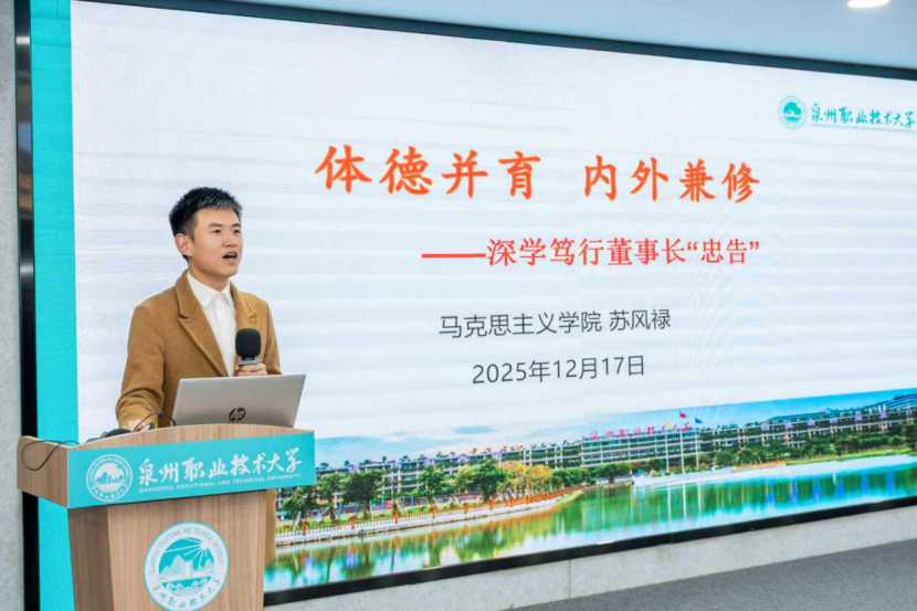 为深入贯彻学校“五育并举”育人理念,切实落实董事长“体德并育,内外兼修”的谆谆忠告,充分发挥共青团思想引领与实践育人职能,进一步提升书院学子的品德修养、身体素质与综合素养,引导青年在全面发展中凝聚成长力量,八方书院团委联合马克思主义学院于2025年12月17日开展“体德并育,内外兼修”主题活动,本次活动由八方书院团委副书记苏风禄老师主持。