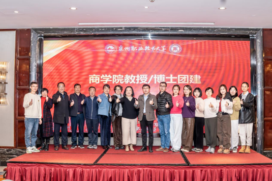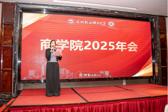 时光荏苒,岁末将至。在2025年收官之际,泉州职业技术大学商学院以“党建引领强根基,凝心聚力促发展”为核心,成功举办年终团建暨年会活动。活动由学院办公室副主任王春茹主持,深度融合校领导党建寄语、双高建设工作复盘、团队风采展示等核心环节,将党建引领贯穿始终,在回顾过往成就、凝聚团队合力的同时,进一步锚定了 2026 年以党建促双高、以协同促发展的奋进方向。
