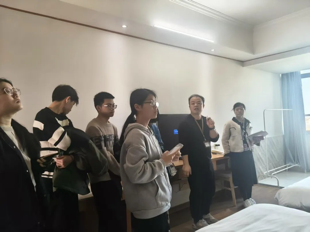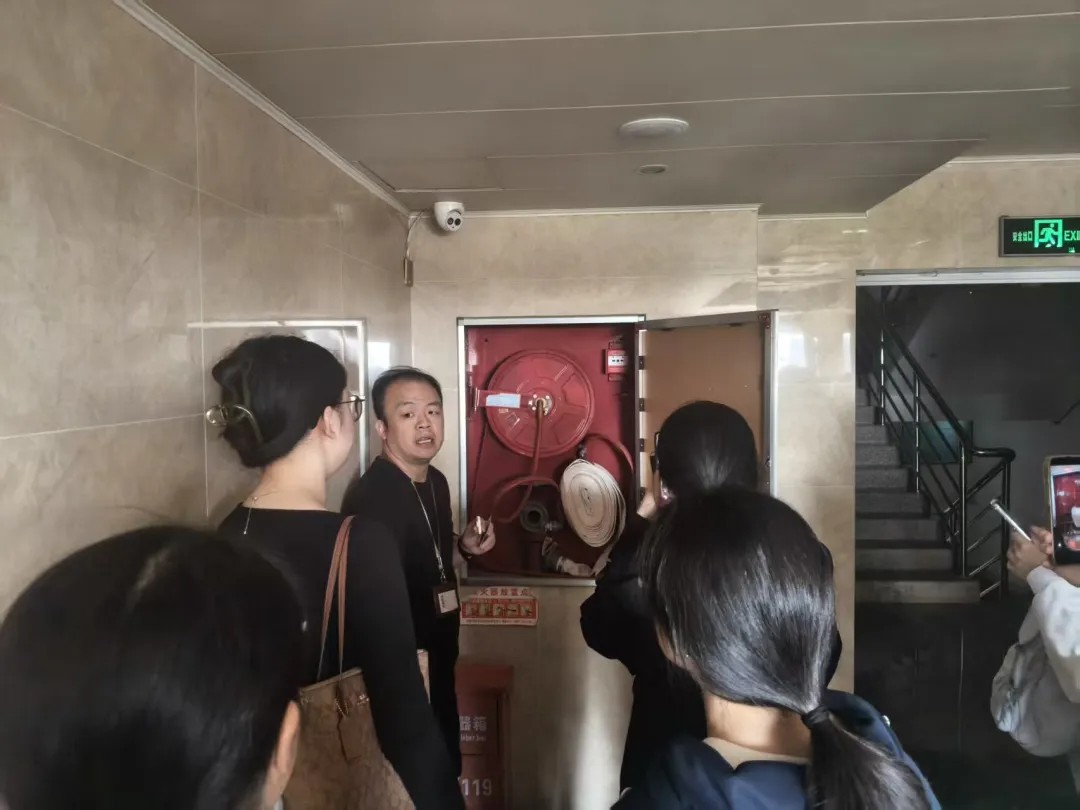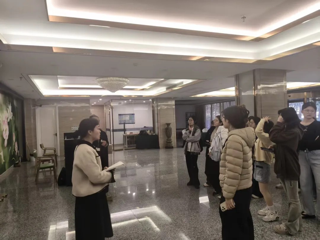 在曾永梅老师的带领下,同学们依次深入我校国际学术交流中心餐厅、健身中心、酒店前厅部、客房部、工程部,通过现场观摩、岗位讲解、安全要点梳理等方式,全面了解各区域安全管理制度、风险防控要点、设施设备巡检规范及应急处置流程。