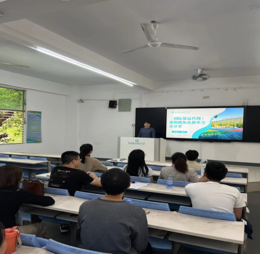 会议由现代物流管理专业负责人韦妙花主持、专业带头人贾蔚教授主讲,以《国际货运代理》课程为例,系统分享了模块化教学在现代物流课程体系中的实践与思考。贾蔚教授指出,随着全球供应链升级和智慧物流的快速发展,传统按章节授课的模式已难以满足复合型物流人才的培养需求。模块化教学通过打破知识壁垒、重构教学内容,能够更精准地对接岗位能力要求,实现“教、学、做”一体化。
