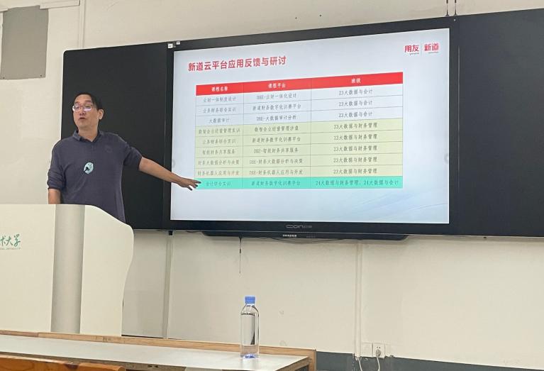 会议开始,相关数智化课程的授课教师代表分享了在教学实践中的经验与困惑。向静老师提出当前站点人数过多的问题,导致学生无法正常开展实操训练,一定程度上影响了课程进度;段芳明老师则反馈,《财务机器人应用与开发》课程的分角色任务中,教师难以兼顾所有学生的问题答疑,影响了教学效果。针对这些实操教学中的痛点,参会教师与数智财经产业学院老师展开热烈探讨,为后续优化教学安排、提升课堂效率凝聚了共识。