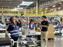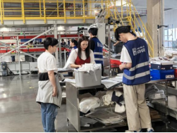 2025年11月,学院领导一行专程前往安踏一体化产业园慰问师生。在企业负责人的陪同下,领导们深入分拣、配送等实训区域,实地查看学生的实操情况,与党员带队教师详细交流实训进展及保障措施。看到学生们在岗位上有条不紊地开展工作,学院院长姚宏伟十分欣慰,亲切叮嘱大家:“要珍惜实战实训机会,在实践中锤炼专业本领,同时务必注意操作安全。”