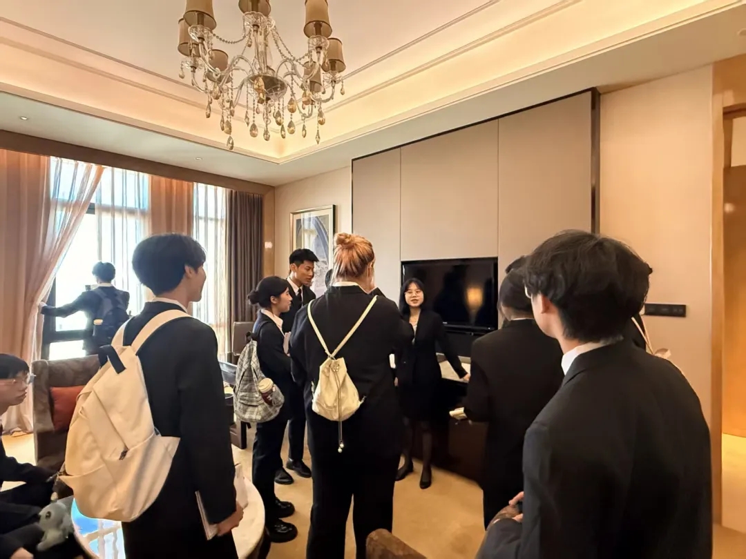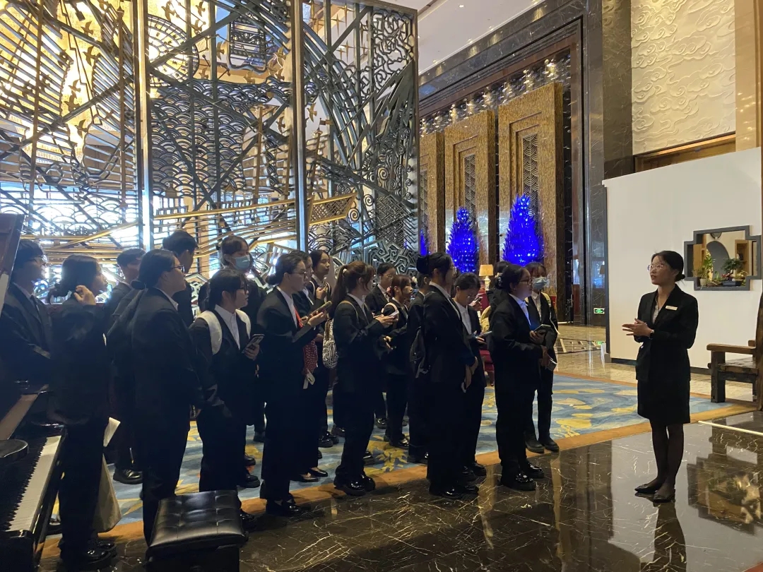2025年11月14日,泉州职业技术大学商学院酒店管理专任教师郑王晶老师带领25级酒店管理(本)1班的同学们开启了一场期待已久的校企合作酒店——泉州富力万达文华酒店学习之旅。此次参观,同学们深入酒店大堂,会议室与客房的各个环节,收获颇丰。作为25级酒店管理新生,当课堂知识撞上泉州富力万达酒店的真实职场,这场实训直接拉满职业期待值!从大堂到客房,每一处都藏着酒店服务的门道与温度~