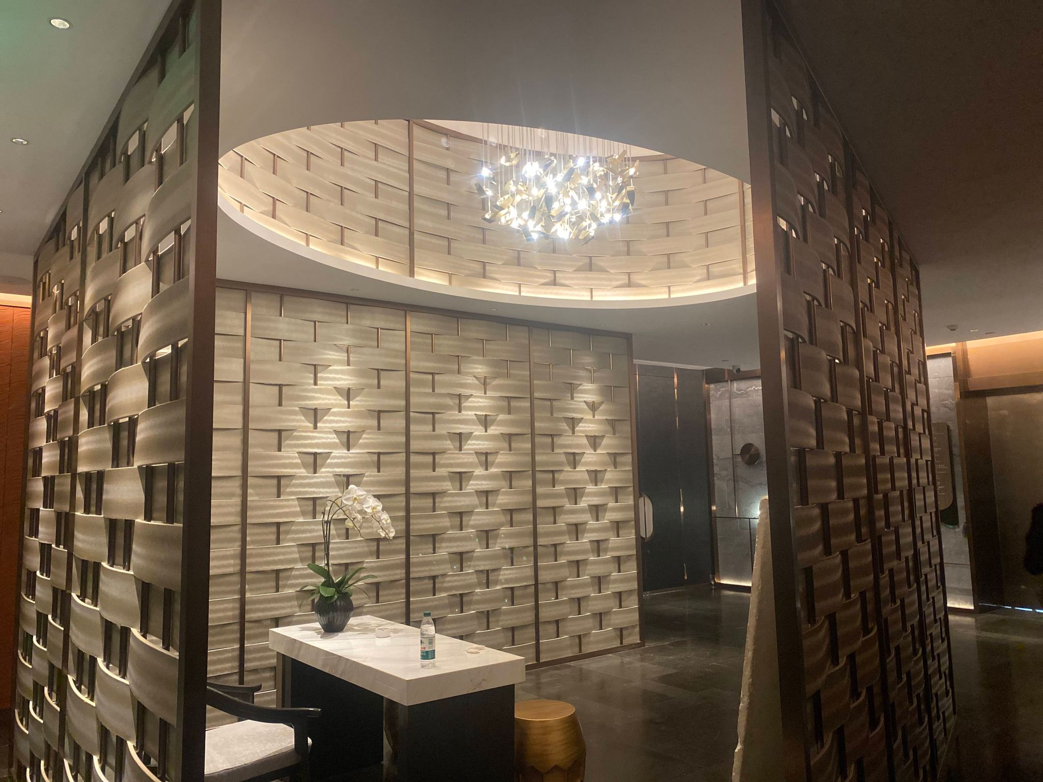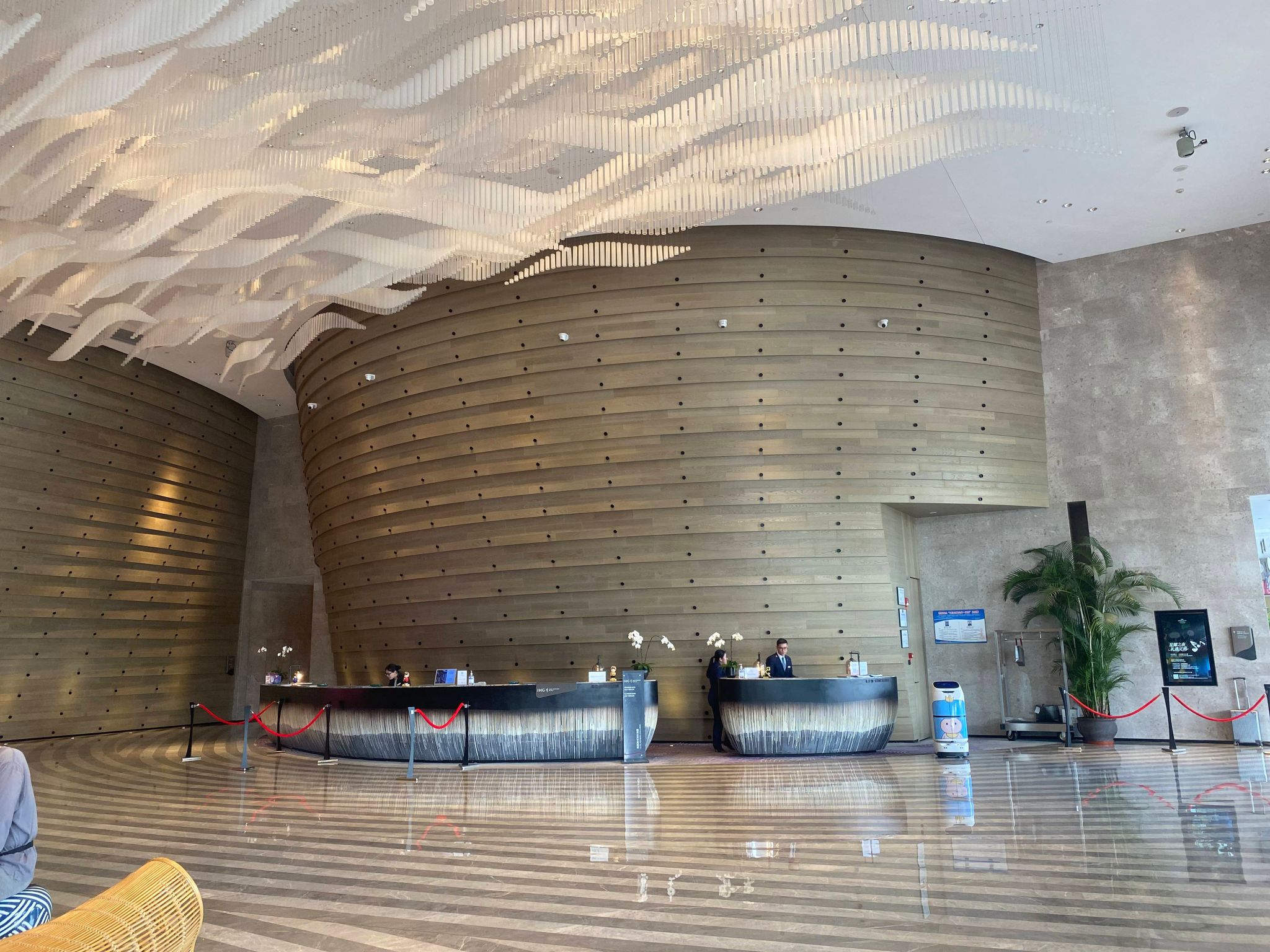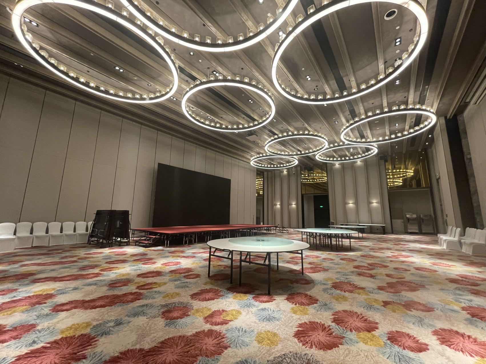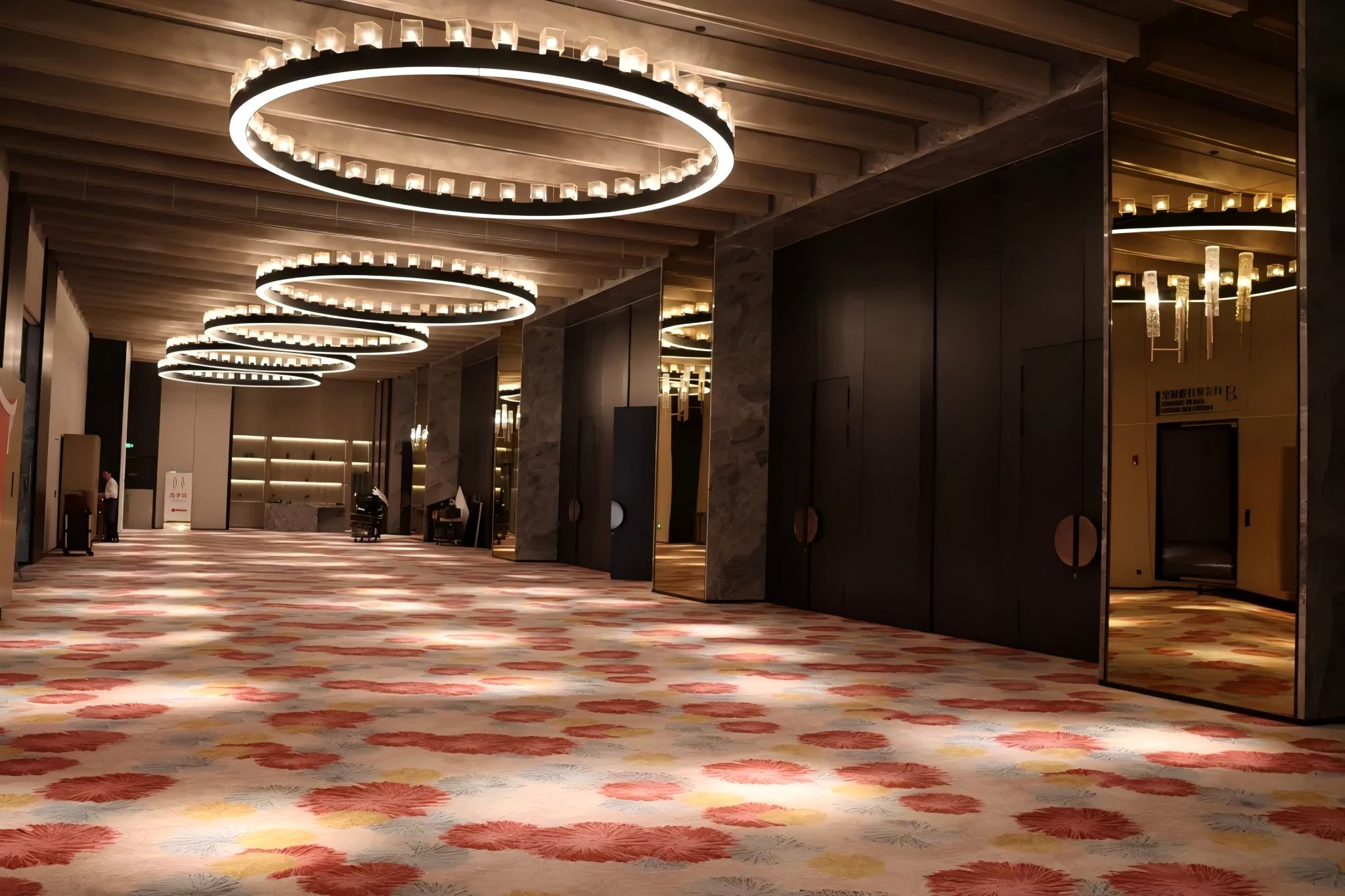离开员工区域,我们步入中餐厅“彩丰楼”。这里以“鸟”为核心设计主题,每一处空间皆以雅致鸟名命名,诗意盎然间尽显灵动与雅致。紧接着,我们来到会议室,此处设计巧妙融合泉州本土文化:地板采用绚烂的烟花图案,呼应当地传统“18拜天公”的民俗,寓意辞旧迎新、万象更新;顶灯则融入“香”的文化元素,光影交织间营造出唯美而富有禅意的氛围。室内桌椅摆放井然有序,大屏幕等设备一应俱全,据介绍,这里曾接待过著名主持人康辉,更为空间增添了几分厚重的文化韵味。