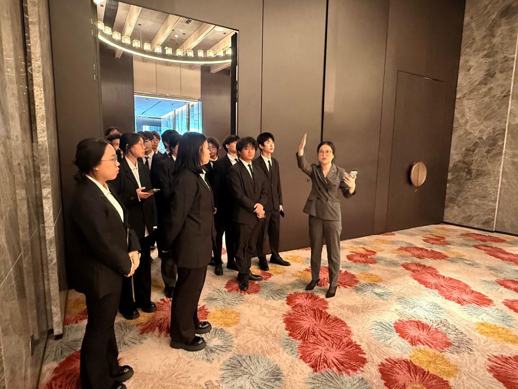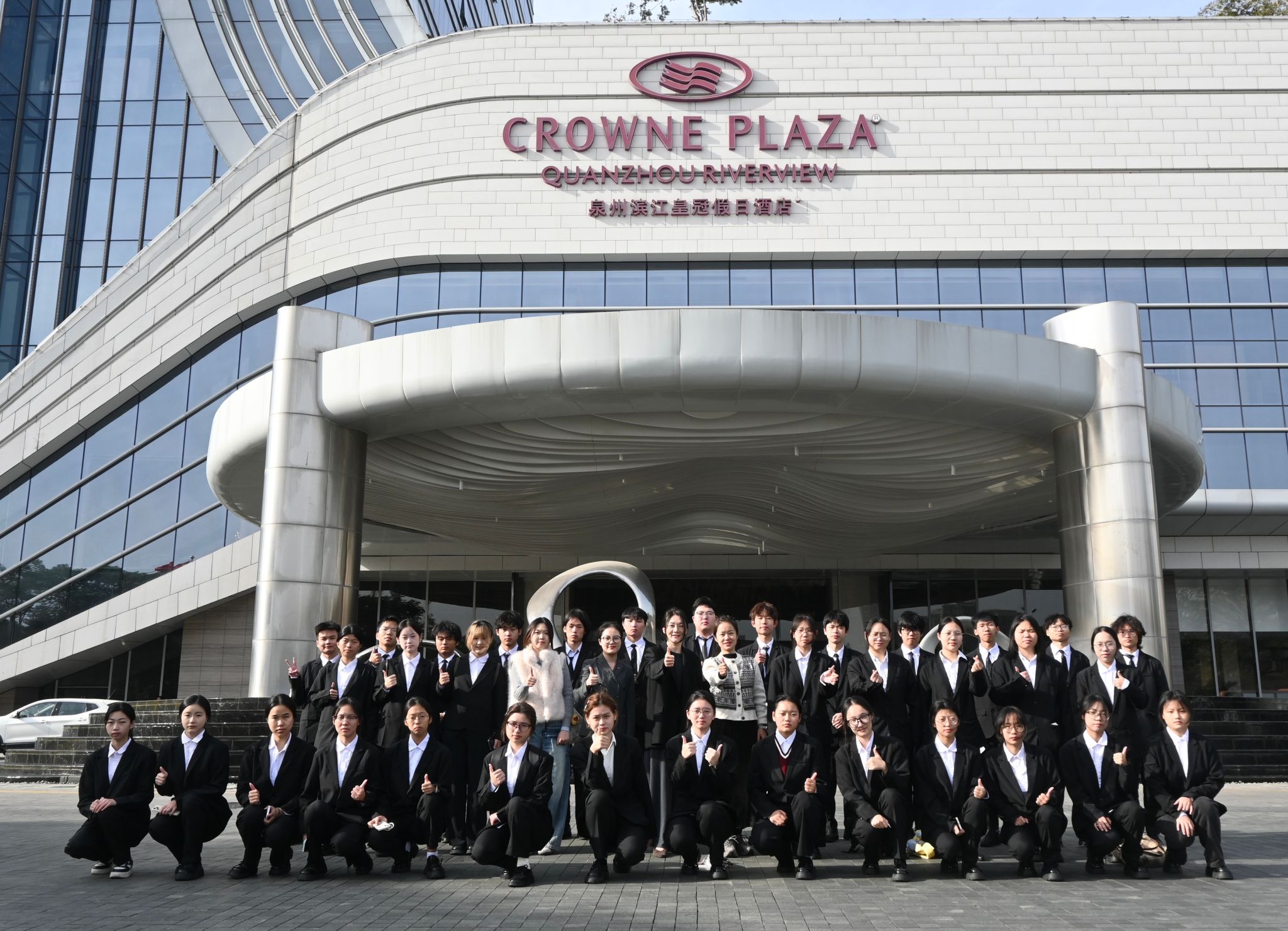 2025年11月28日,在郑王晶与姚冬梅两位老师的精心组织与带领下,2025级酒店管理二班的全体同学带着对行业的憧憬与求知热情,走进了泉州滨江皇冠假日酒店。在酒店朱总监和许经理的亲切陪同与细致讲解中,同学们开启了一段融合专业洞察与人文温度的参观学习之旅,通过面对面的交流,深化了对酒店管理专业的理解,收获了一段充实而难忘的实践体验。