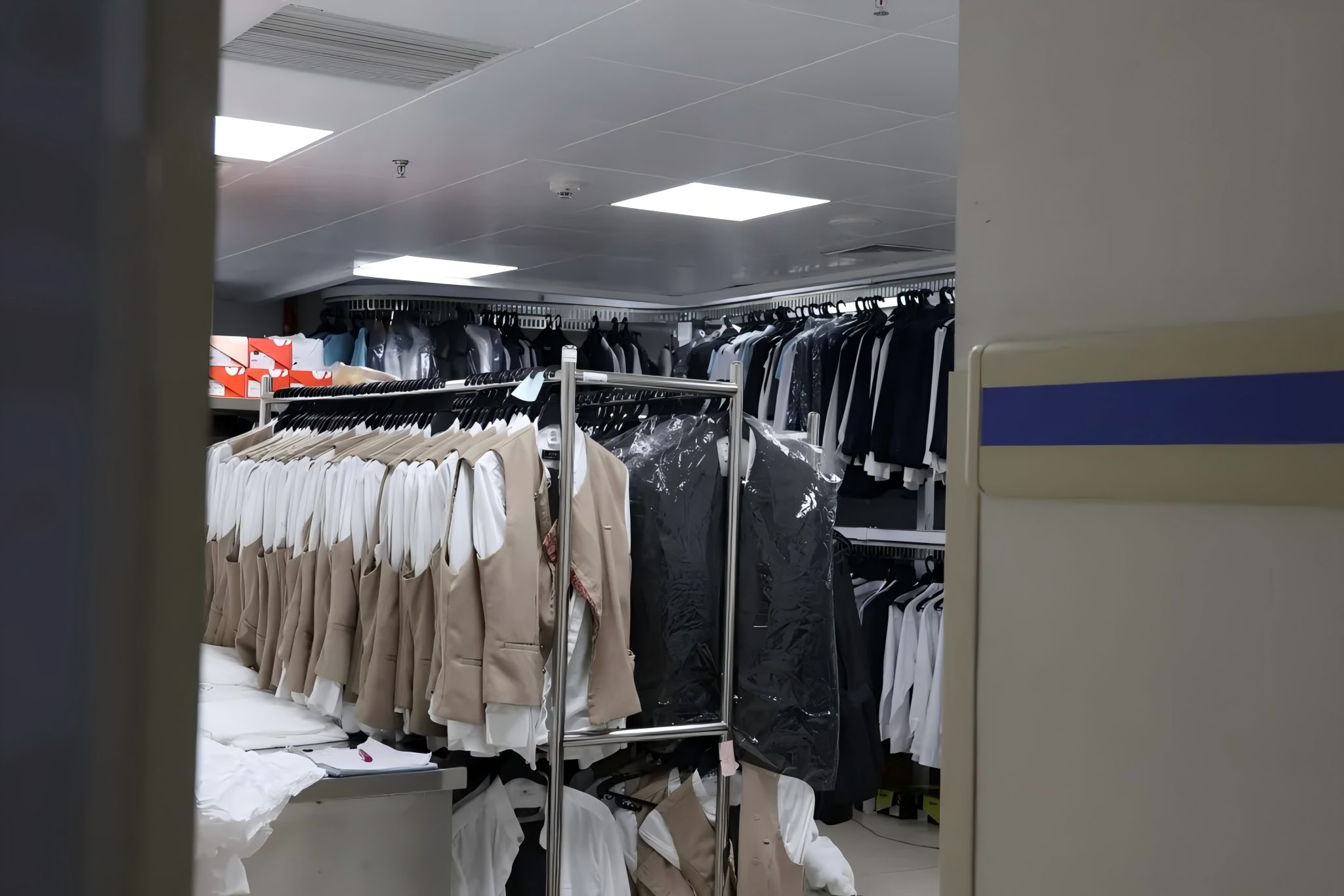 洗衣房内为每位员工贴心准备了两套制服,细致入微的安排尽显酒店的人文关怀。漫步于员工通道,清新的海洋风格装饰色调扑面而来,墙面上张贴的优秀实习生与员工荣誉榜,犹如一座座指引方向的灯塔,激励着在场每一位参观者奋勇前行。而最令人惊喜的莫过于员工食堂,不仅环境整洁清爽,更提供全部免费的丰盛餐食,这份实在又温暖的福利,让我们深切感受到酒店对员工的重视与关爱。
