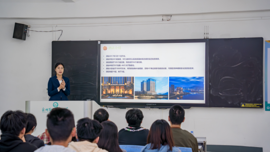 名企集结,筑牢对接基石。本次宣讲会特邀厦门海沧融信海景华邑酒店、厦门海沧正元希尔顿逸林酒店、莆田香格里拉酒店、泉州晋江国际机场温德姆花园酒店、泉州恒福酒店有限公司(晋江温德姆酒店)5家酒店管理领域标杆企业齐聚现场。作为行业内的中坚力量,这些企业的集体参与不仅为宣讲会注入了高质量的资源内核,更为学子们提供了与头部企业近距离接触的宝贵契机。