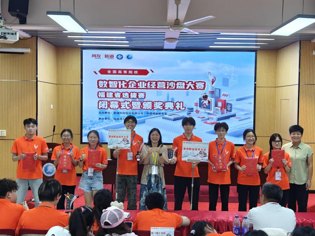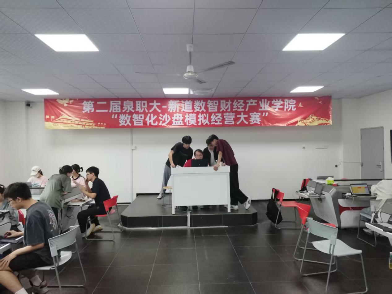 在加快发展现代职业教育、加快培育新质生产力的国家战略引领下,职业本科作为技术技能人才培养的“塔尖形态”,正承载起服务高端产业、支撑高质量发展的重要使命。2025年5月28日,商学院依托“职教月”活动平台,在泉州职业技术大学教务处的指导下成功举办“第二届泉职大-新道数智财经产业学院“数智化沙盘模拟经营大赛””,通过构建数字商业实战场景,推进产教深度融合,系统锻造学生的企业运营素养、数智思维能力和岗位创新力,为职业本科教育改革注入强劲动能。