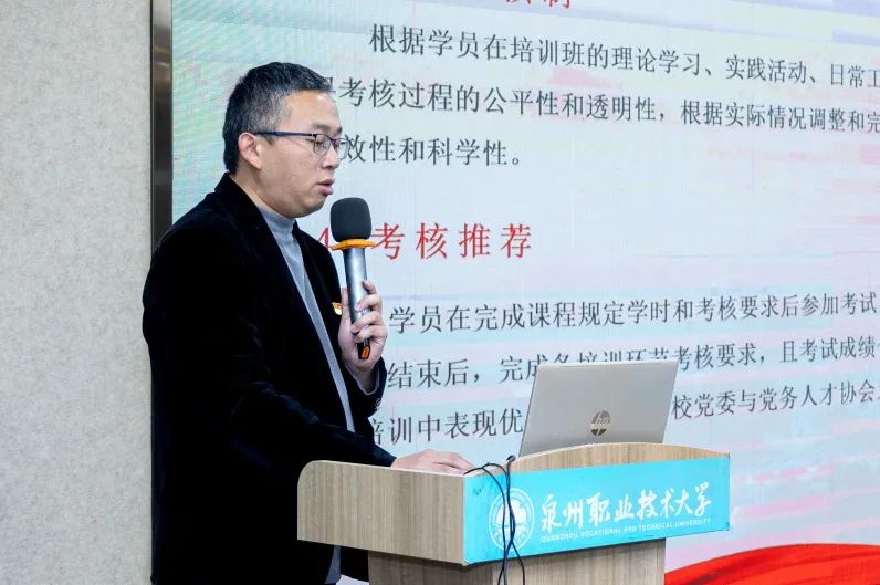 来自酒店管理专业的廖晓兰同学作为学员代表发言。她表示,将珍惜此次培训机会,不断提高自己的政治觉悟和理论水平,认真学习党务工作的相关知识和技能,积极在党务实践中提升自己的党务工作水平。扎根晋江、服务晋江,努力成为晋江民营企业的新生力量,助力新兴领域党建、行业协会商会党的建设和改革发展。