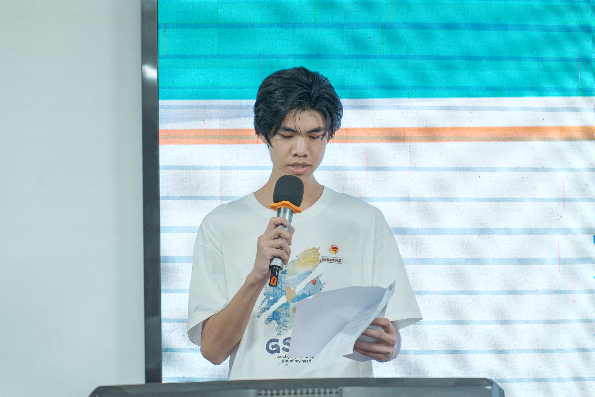 2025级油气储运工程专业谢凌轩同学作为新生代表发言,他表达了对大学生活的憧憬和期待,同时也代表全体新生郑重承诺,将以饱满的热情和积极的态度投入到学习和生活中,努力成为一名优秀的泉大学子。