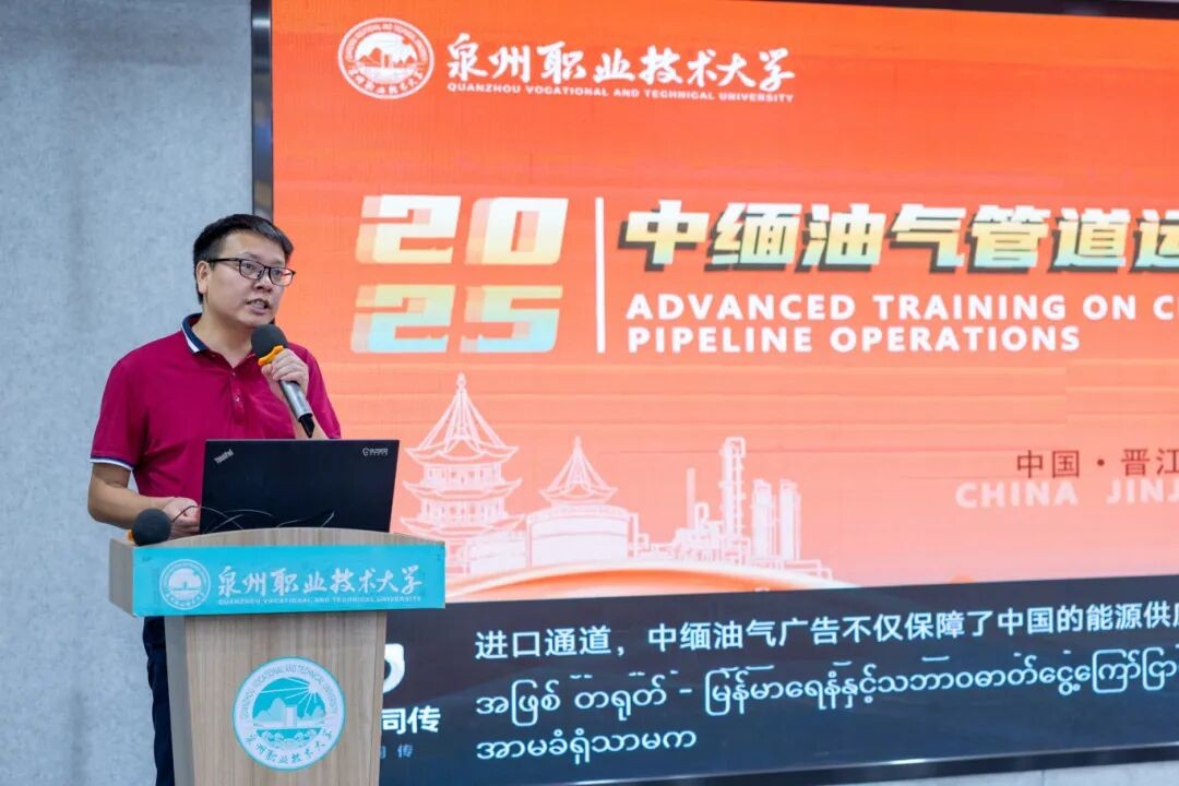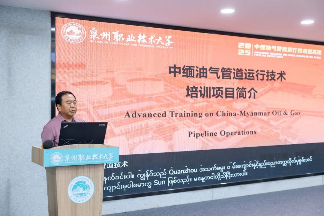 在开班致辞中,林文艺代表学校全体师生对远道而来的学员表示热烈欢迎。他介绍,学校在油气储运领域拥有扎实的学科基础和丰富的校企合作经验,设有油气储运工程等相关专业,并有福建省清洁能源应用技术协同创新中心、福建省汽车清洁能源高校应用技术工程中心等多个科研平台。他表示,中缅油气管道作为连接中国西南地区和缅甸的关键能源通道,对两国的能源安全与经济发展意义重大。此次技术提高班汇聚了来自中缅油气管道相关企业的员工,是两国在油气管道技术领域深入交流的绝佳契机。学校精心筹备,设计了“理论+实践”的课程体系,力求通过多元化的教学形式,帮助学员全面掌握油气储运领域的先进技术与管理经验。同时,也希望通过此次培训,进一步加深中缅两国在能源领域的合作与互信,推动双方实现共同发展。