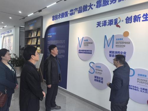 调研团队先后参观了天泽环保的乳液研发实验室、产品检测中心,详细了解企业在仿石涂料原材料研发、环保助剂生产等核心业务的技术瓶颈与发展需求。在实验室现场,张建军副校长指出:“天泽在绿色涂料领域的技术积累与我校清洁能源协同创新中心的研发方向高度契合,对未来开展深入合作创立了良好的基础。”