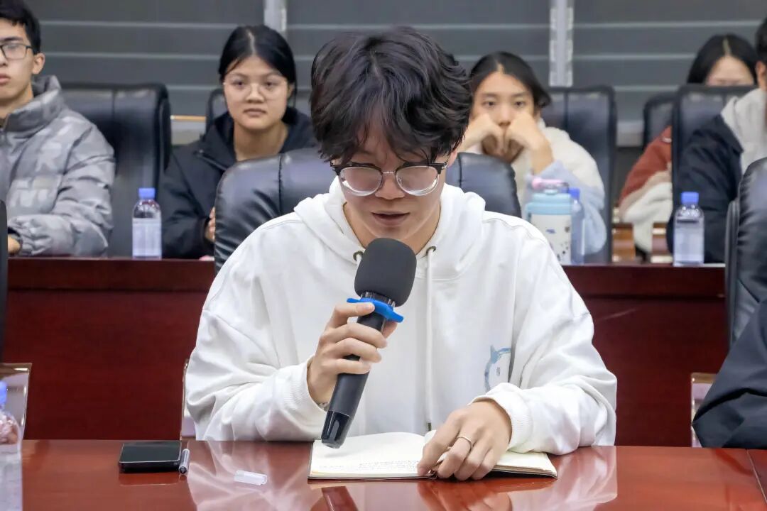 座谈会上,双馨书院党总支书记罗永珍首先介绍了与会嘉宾、会议核心议题与活动目的,明确本次座谈旨在凝聚双院育人合力,精准回应学生学业需求。旨在进一步凝聚书院与学院育人合力,围绕期末学风建设、学业帮扶等核心议题展开研讨,推动党建引领下的学风建设与专业教育深度融合,切实服务学生成长成才。