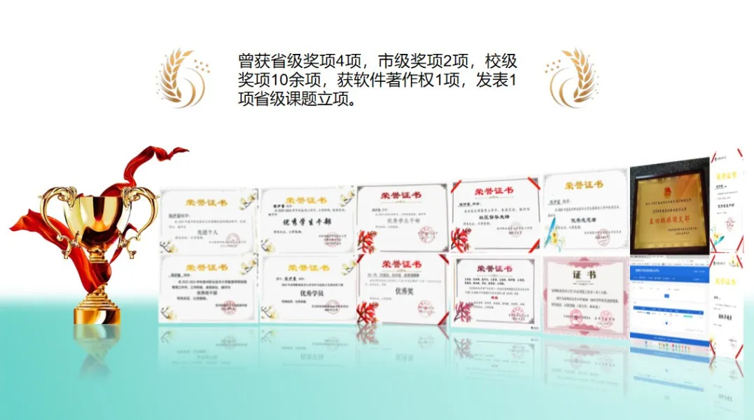 她始终专注专业学习,课堂上认真钻研、勤于思考,课后主动交流、夯实基础,学业成绩稳定优异,长期保持专业排名前三。在扎实学好专业知识的同时,她积极投身创新创业实践,连续两年参与大学生创新创业大赛均取得省级奖项。作为第一负责人参与海峡两岸女大学生创新创业大赛并斩获省级铜奖,主持1项省级立项,获得1项软著,申请2项实用新型专利,将专业知识转化为创新成果。
