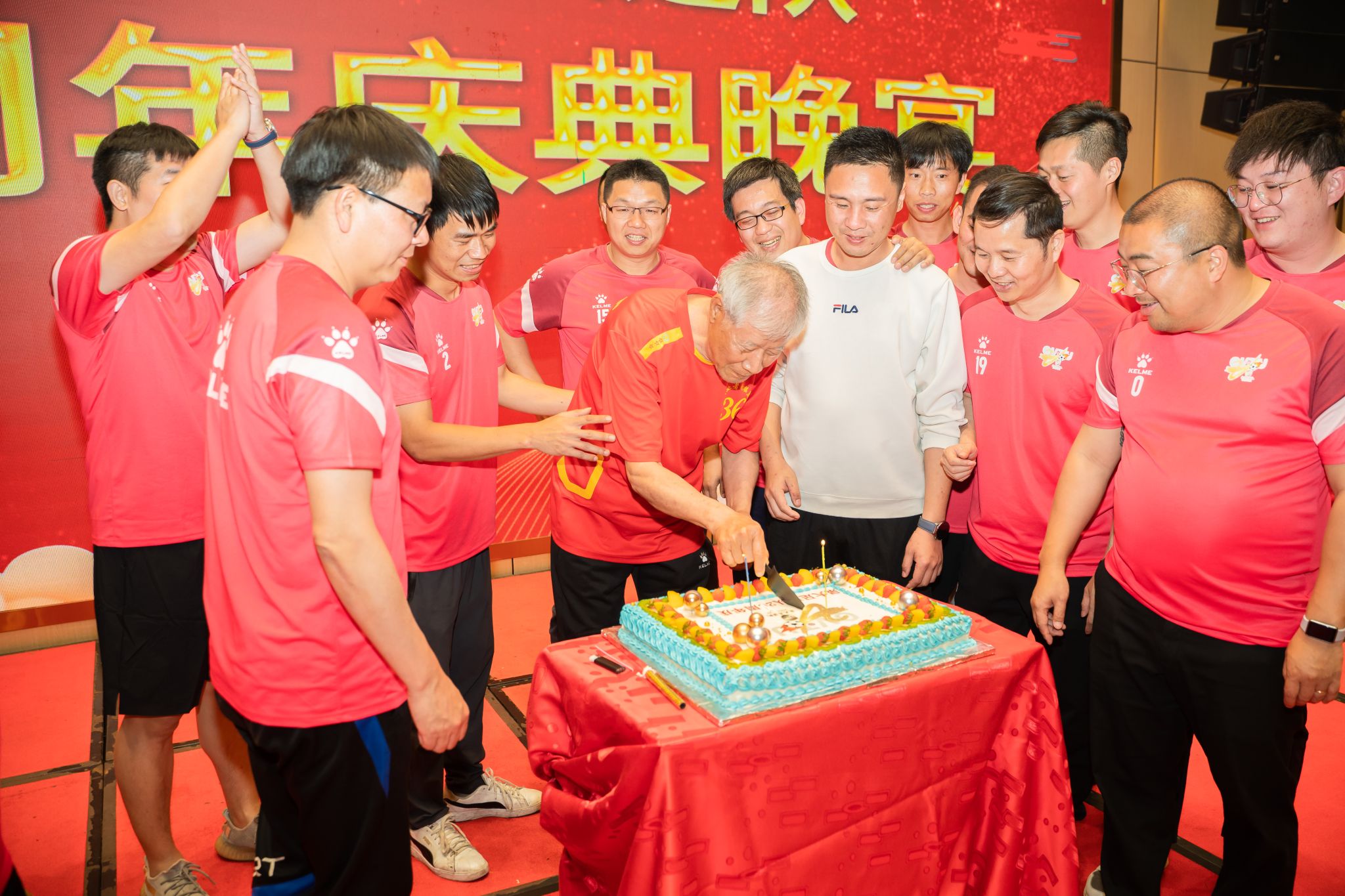 晚会中不仅设有精彩纷呈的节目、还有对陪伴泉大足球20年的功勋的颁奖、表彰和激动人心的抽奖环节。晚会的最后,泉大足球20位功勋人物上台共同为泉大足球进行了20周年庆生。
