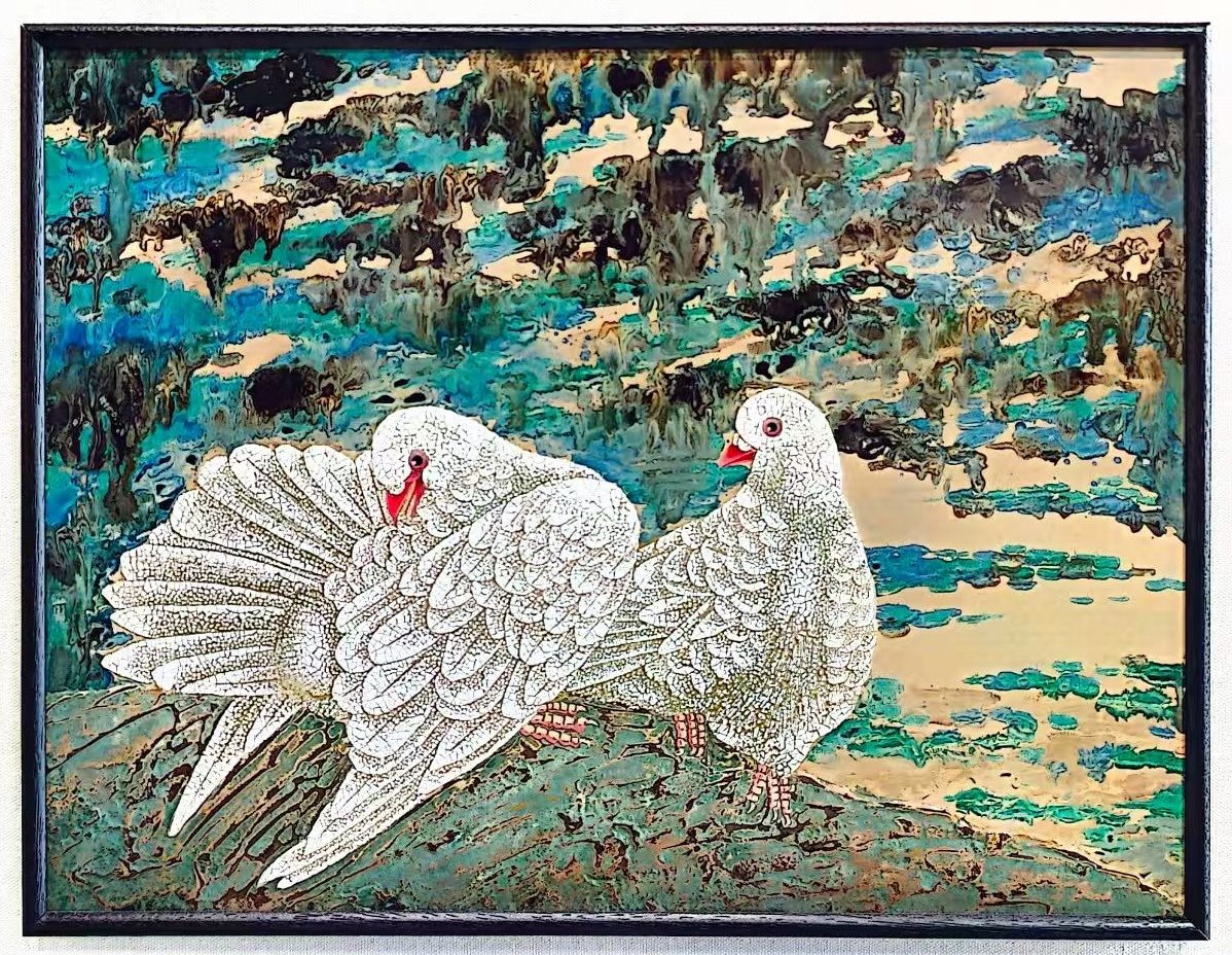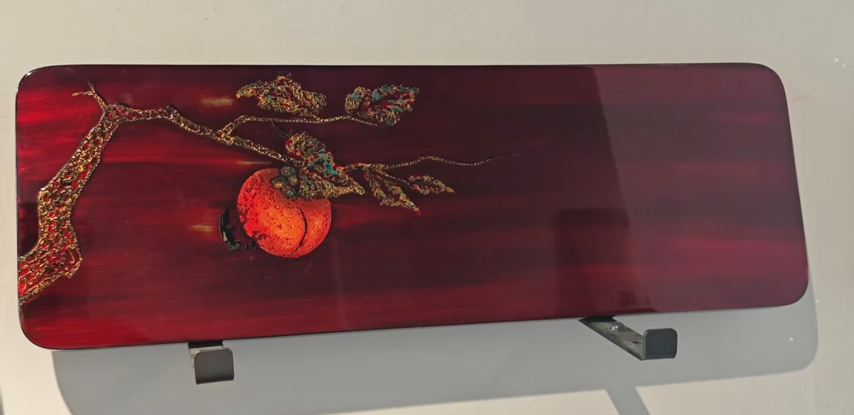 在校期间,环境艺术设计专业的系统训练,为这颗种子浇灌了肥沃土壤。空间色彩美学的研习,让他得以用更精准的视觉逻辑把控漆艺作品的构图韵律与色调层次;材料应用的创新思维,赋予他突破传统漆艺材质边界的勇气,尝试将现代媒介与天然漆料碰撞融合;而传统与现代的设计融合逻辑,则为他指明了创作的核心方向,不是复刻过去,而是让古老工艺在当代语境中焕发新生。校园里的每一次学习与积淀,都化作日后创作的底气,让他既能沉下心守住传统精髓,又能勇敢打破边界,用当代审美语言赋予漆艺作品新的叙事可能。