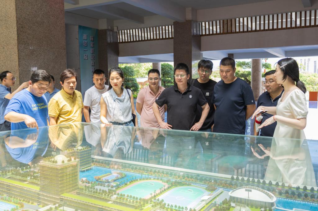在校园沙盘前,老师们向校友们详细介绍学校近年来的整体规划和发展蓝图。看着沙盘上清晰呈现的建筑与设施,校友们惊叹于母校日新月异的变化。漫步在熟悉又陌生的校园里,他们走进教室、实训室,那些为梦想埋头苦读的日子、与同学老师热烈讨论的场景仿佛就在昨日。一路上,校友们感慨万千,纷纷用手机记录下母校的变化与美好。
