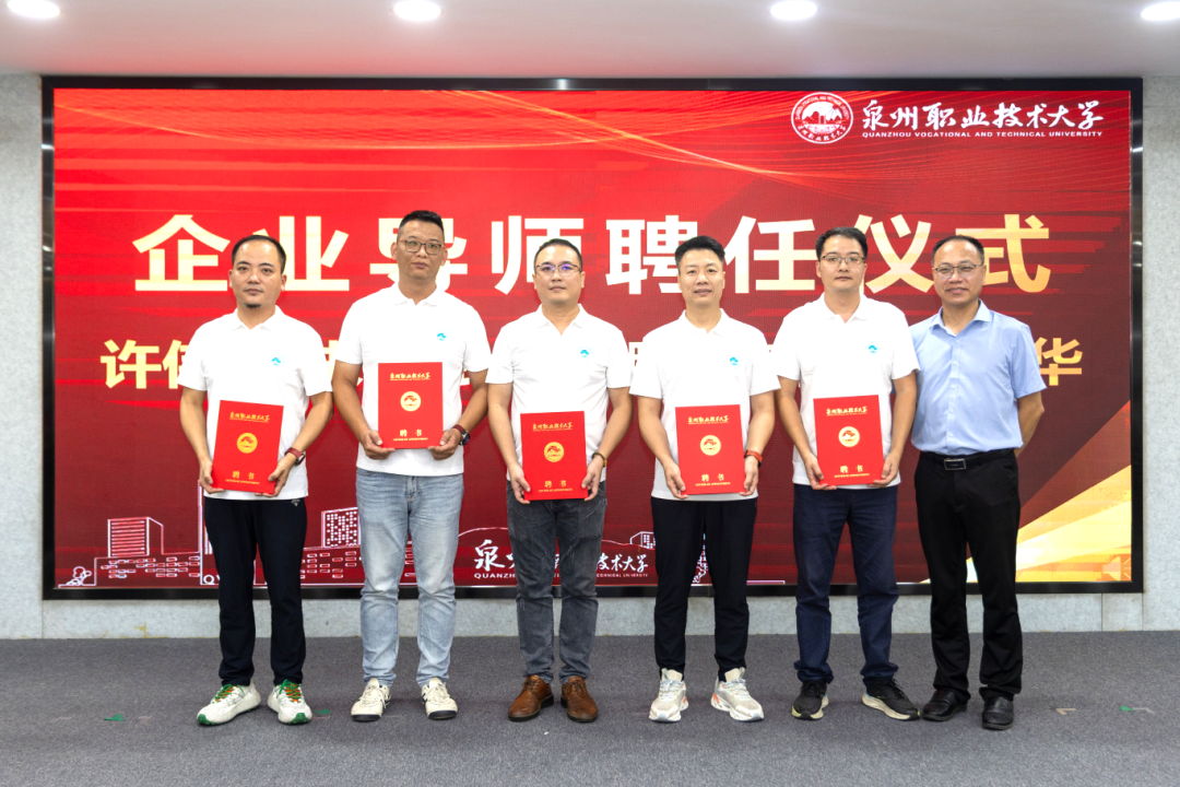 紧接着,三项校企合作项目现场签约。泉州中润汽车发展有限公司、南安市汽车行业协会、厦门隆达汽车销售服务有限公司分别与工学院达成合作,共建产学研平台,推动人才共育、资源互通。随后,许伟强等五位校友受聘为工学院企业导师,将为学弟学妹提供一线实践指导。