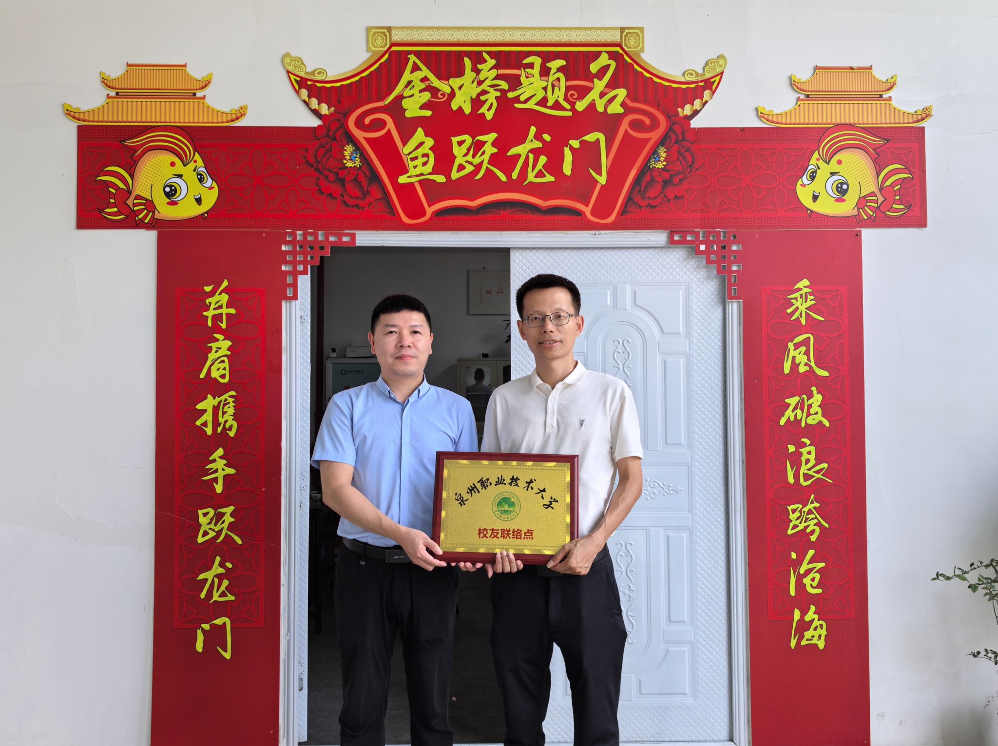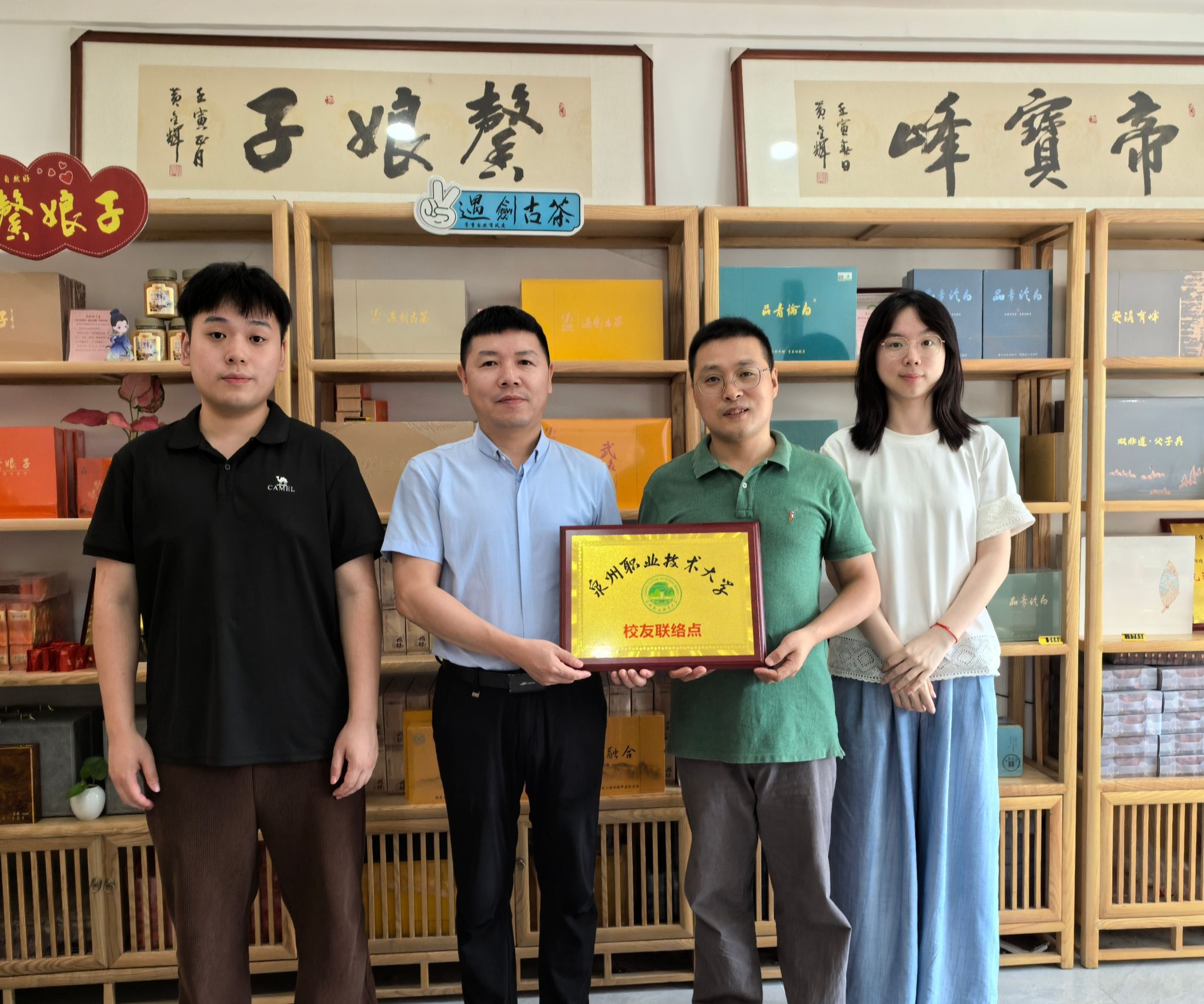 为进一步凝聚校友力量,搭建更广阔的校友交流平台,7月16日,泉州职业技术大学党委副书记、副校长、校友总会理事长蔡金佩,校友总会秘书林倪,思政辅导员郑智超一行前往泉州地区,开展校友走访活动并举行“校友联络点”授牌仪式。