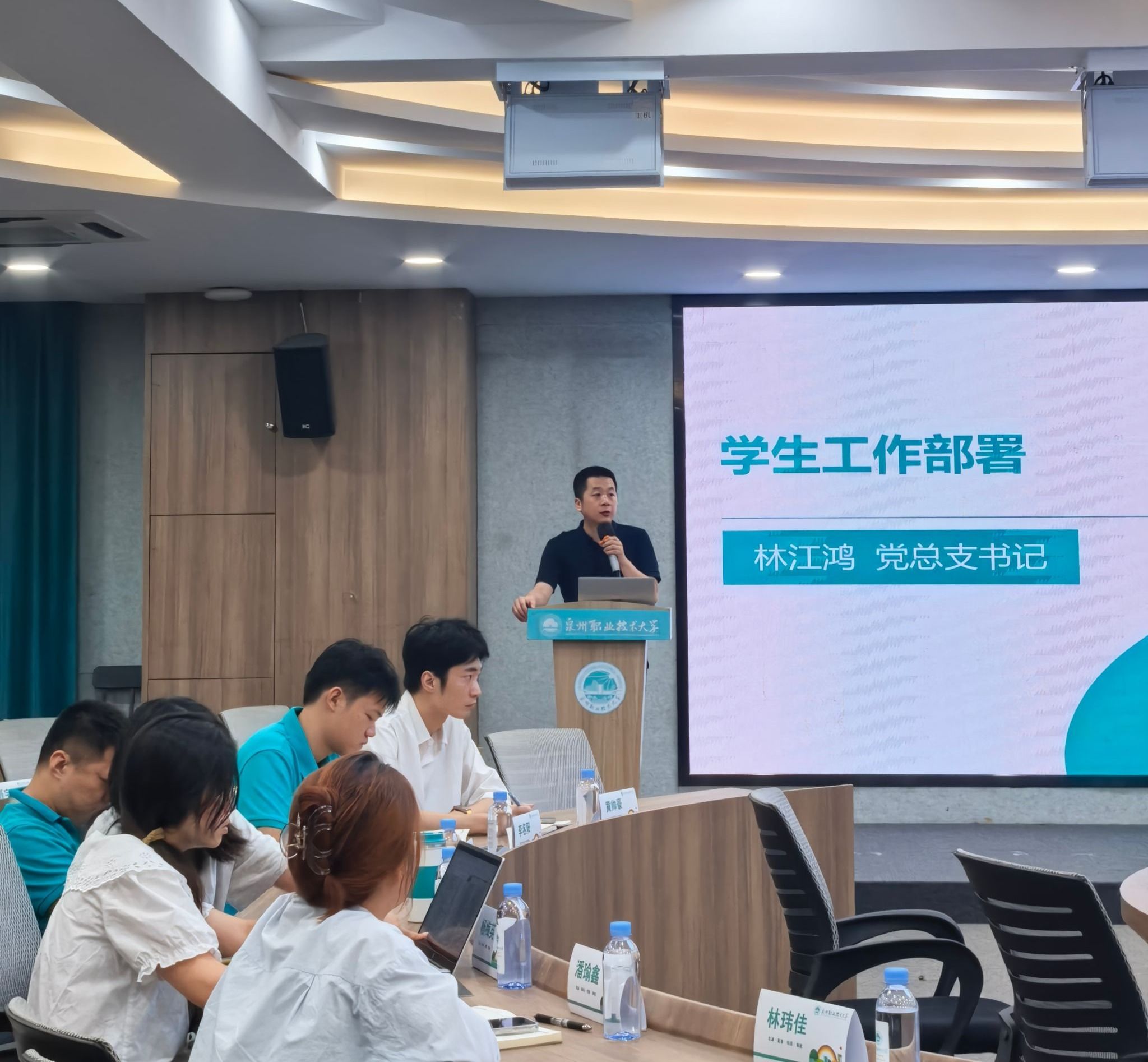林江鸿书记对学生工作提出明确要求,指出要强化学风建设,推进实习就业,加大竞赛指导力度,深化校企合作,全面落实"双院联动",构建全员育人良好格局。