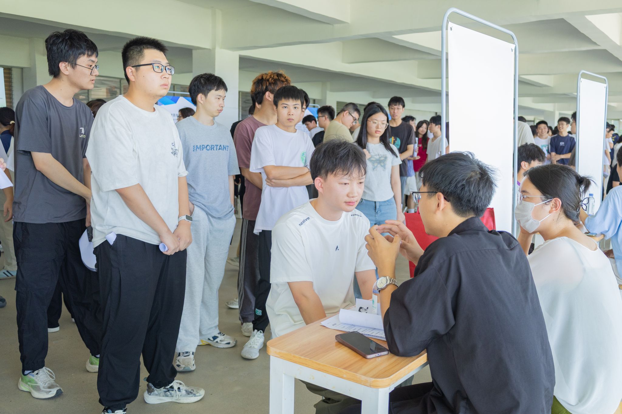 400余名学生悉数到场参与双选活动,手持精心准备的求职材料,有序穿梭于各企业展位之间,经过与HR的深入交流,多名学生在现场就锁定了实习单位,收获满满。