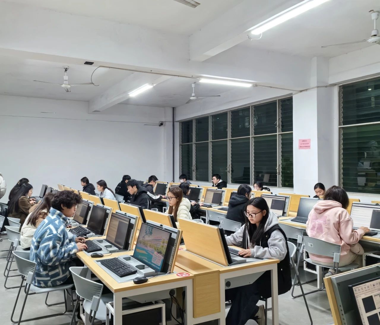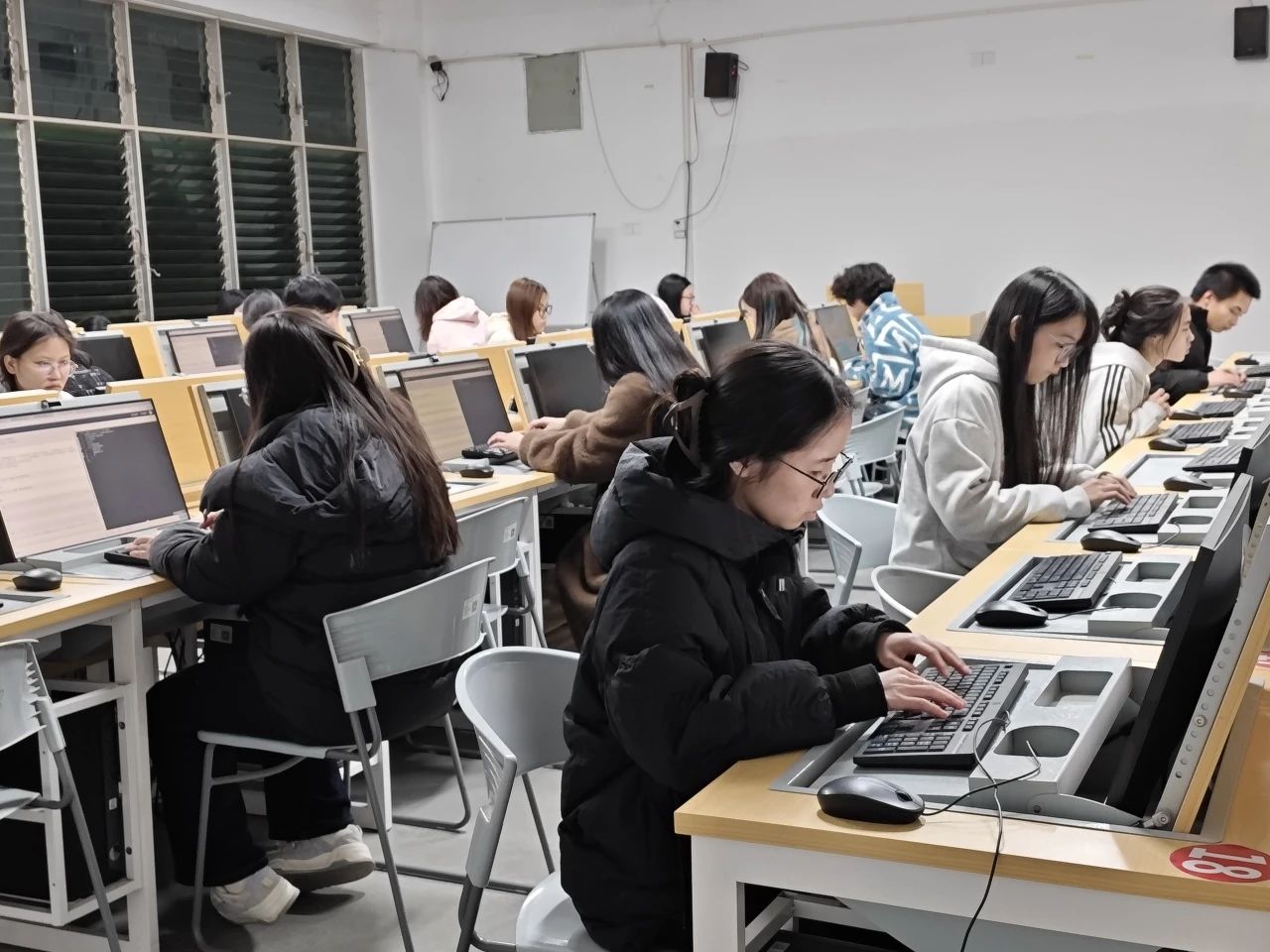 在比赛过程中,同学们面对难题时眉头紧锁,眼睛紧盯着屏幕,手指在键盘上快速敲击,尝试各种解题思路。每一个人都沉浸在这场思维的较量中,现场弥漫着紧张而又热烈的氛围。同学们对算法的较量、逻辑的对垒,在这次“联创杯”计算法编程挑战赛中激烈上演。
