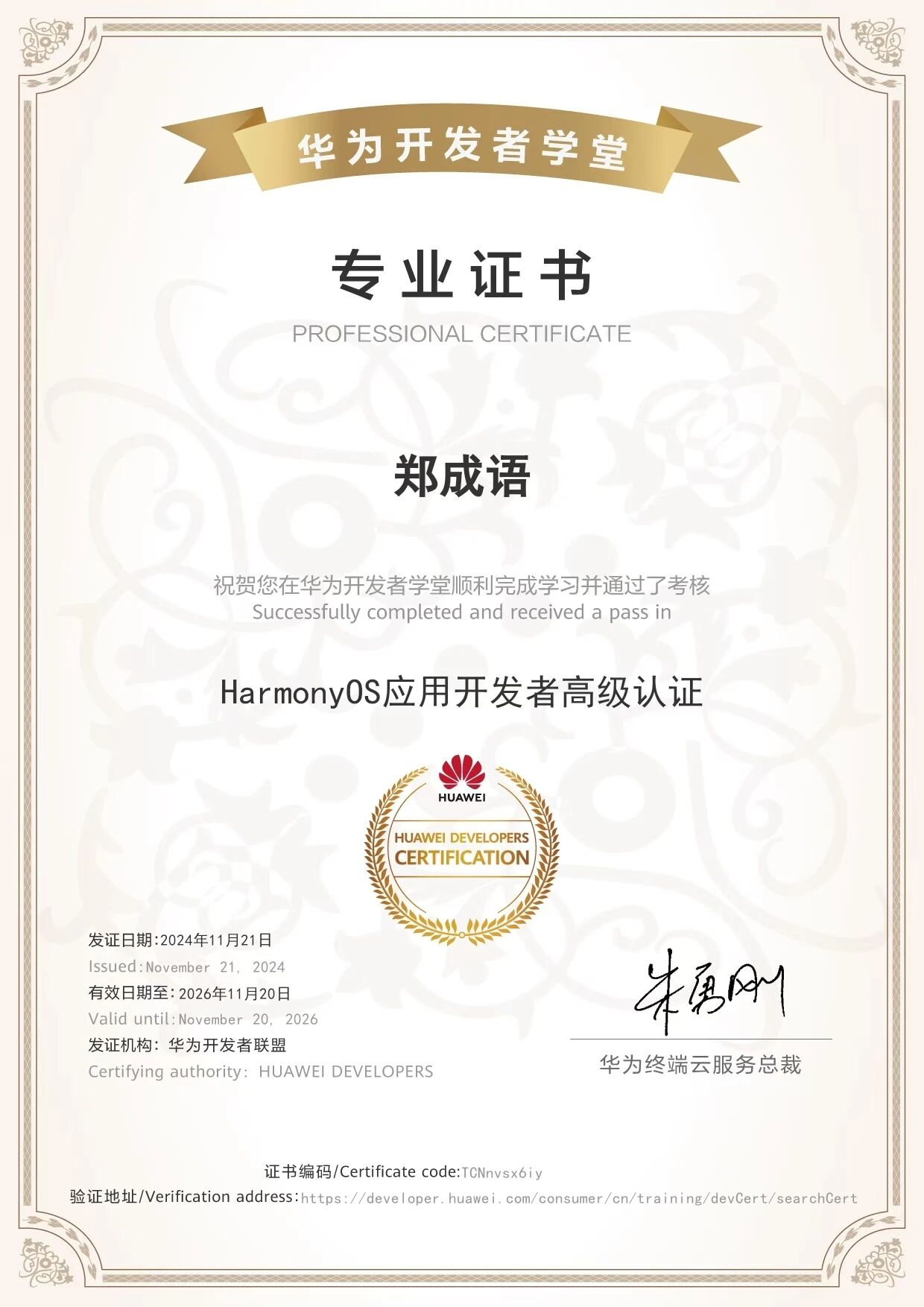 ✨ 获得HarmonyOS应用开发者高级认证证书