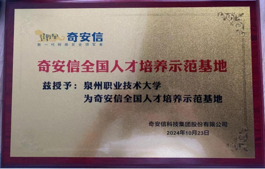 2024年11月,奇安信授予我校“奇安信全国人才培养示范基地”