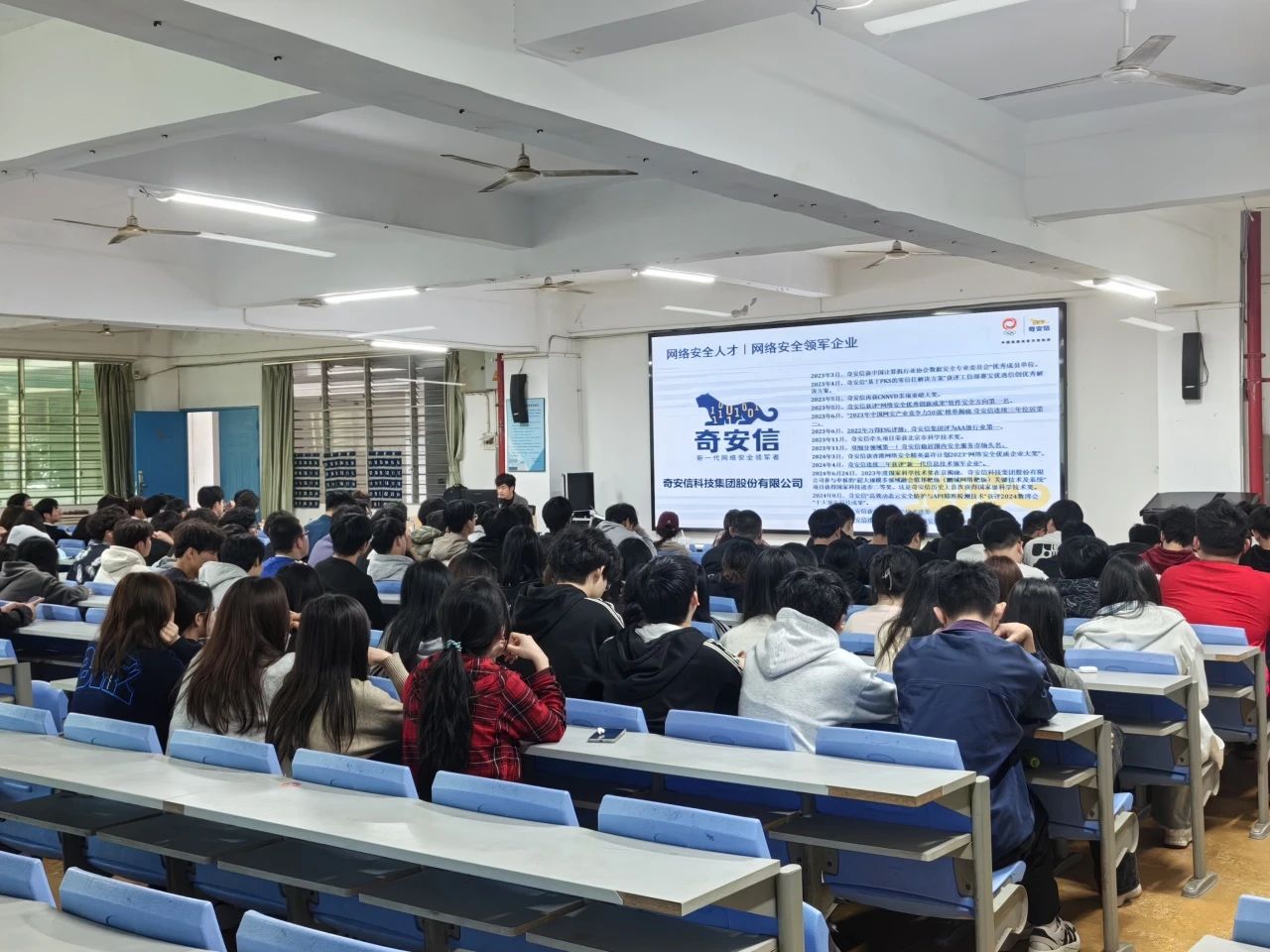 为助力学生更好的踏上实习岗位,搭建专业与行业的桥梁,3月12日下午,我院联合奇安信科技集团股份有限公司(以下称“奇安信”)在A201举办“信息安全与管理专业岗位实习专项赋能计划”活动。联合创新产业学院党总支书记林江鸿;奇安信湖北认证中心大客户经理熊婧、湖北教育行业方案经理邹映;奇安信工程师王青袁、伍文锋、洪伟隆;学业辅导员汪惠玲、张俊彬以及2022级、2023级信息安全与管理专业学生参加。