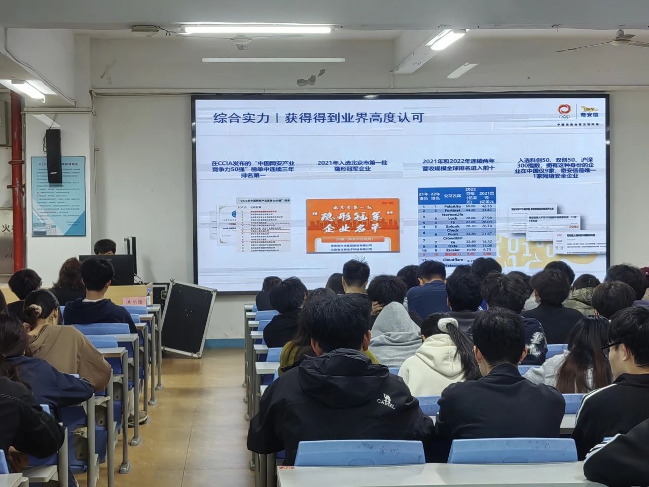 通过展示“行业就业岗位技能图谱”,工程师详细拆解了安全运维、渗透测试、数据加密等热门岗位的核心能力要求,并指出:“随着数字化进程加速,网络安全人才缺口持续扩大,职业发展潜力巨大。”结合真实案例,警示学生远离“网络黑产”等灰色领域,强调“技术向善”的行业底线。互动环节,学生围绕“职业规划路径”“技能提升方向”展开提问,现场气氛热烈。