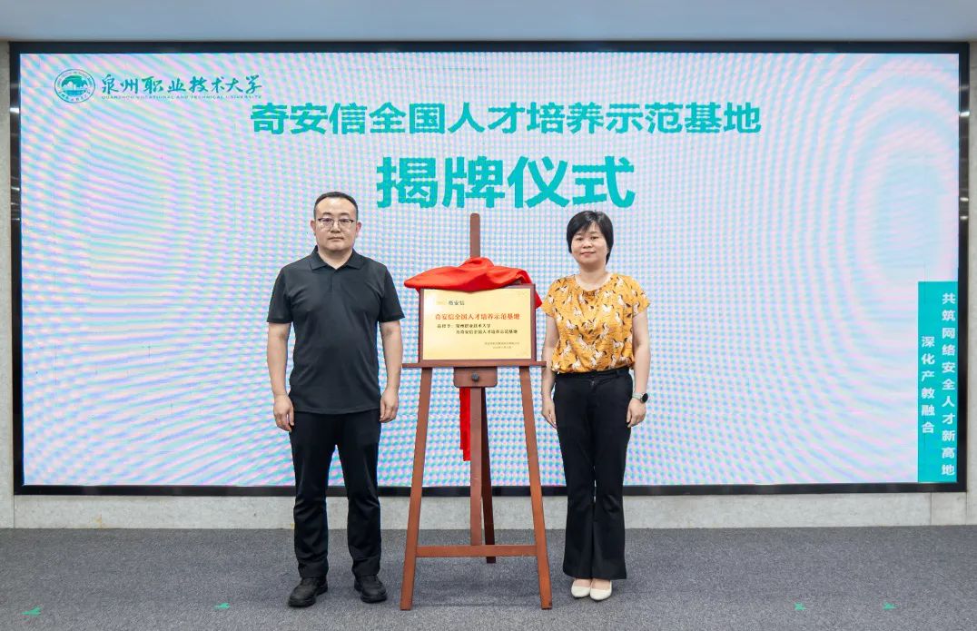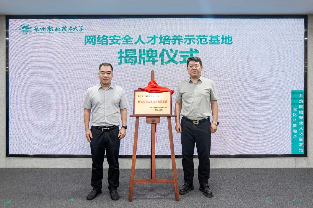 5月21日,泉州市网络安全人才培养示范基地揭牌仪式在我校举行。活动以“深化产教融合,共筑网络安全人才培养新高地”为主题,由泉州市委网信办、泉州职业技术大学与奇安信科技集团股份有限公司联合主办,推动政校企三方协同育人,助力网络安全事业发展。