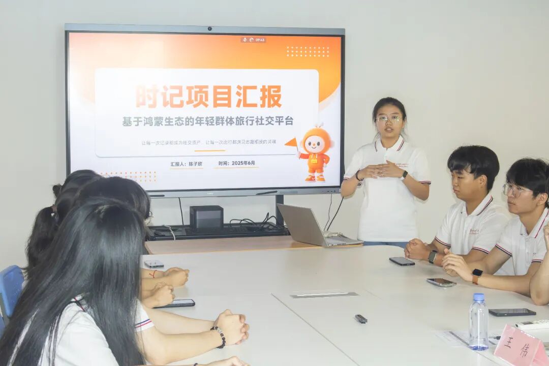 专班教学严格遵循企业开发流程,从需求分析、原型设计到测试部署,学生全程使用鸿蒙开发工具。“他们平均每天投入大量时间在开发上,这种投入源自对技术的热爱和对国产系统的认同。”联合创新产业学院实验员黄东明老师说,学生们对鸿蒙系统的热情让他感同身受。