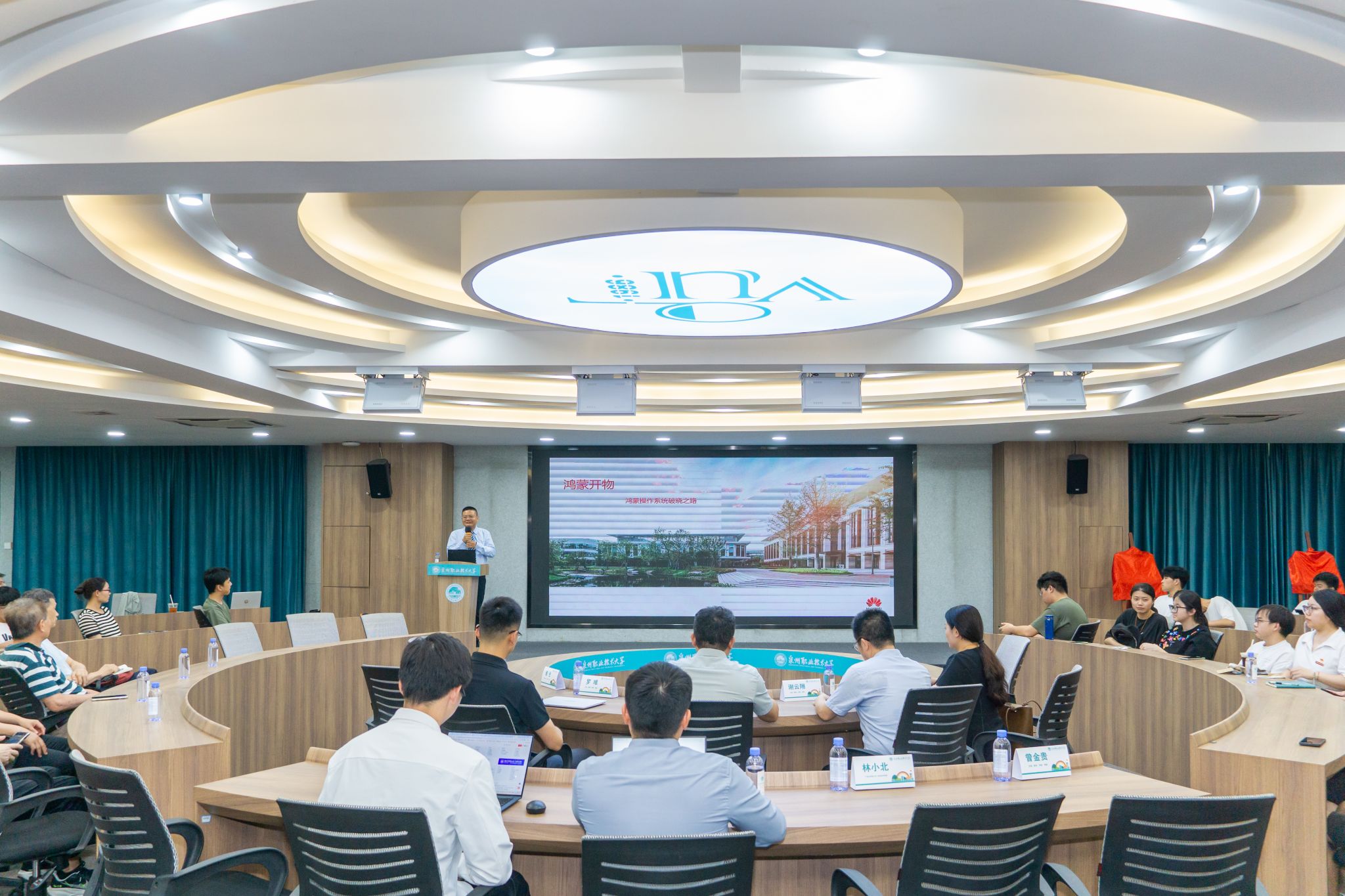 ▲ 华为相关负责人在会上作《泉大鸿蒙现场工程师专班培训能给学生带来什么?》教学思考分享