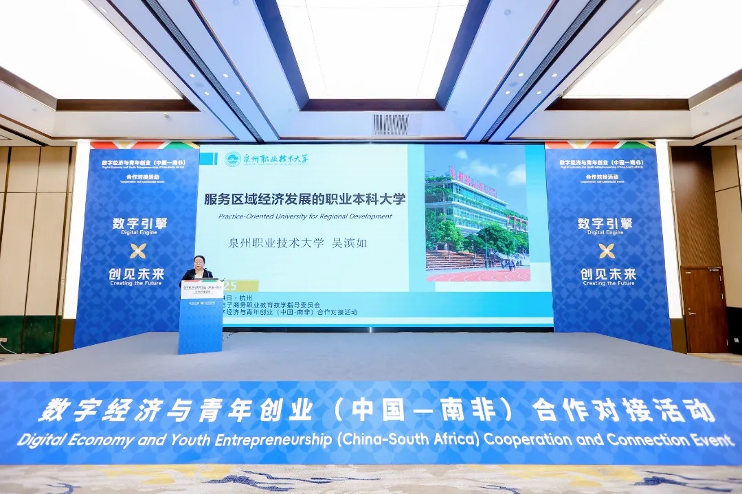 9月24日,泉州职业技术大学校长吴滨如应邀出席在杭州举行的数字经济与青年创业(中...