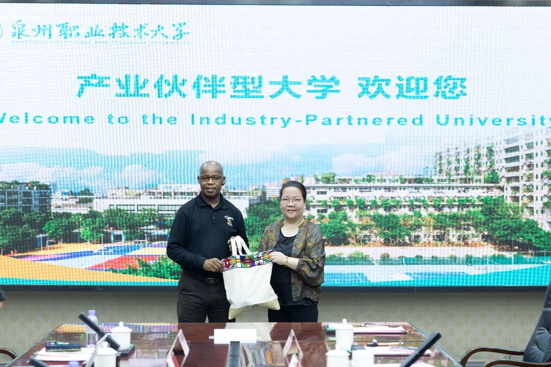 9月18日,南非批发与零售业教育培训署首席运营官Johannes Siphon Shoba、治理风险与合规高级经理Pheaga Jacob Moasa、法律服务经理Malesela Ludwick Louis Moropodi,与全国电商行指委“一带一路”合作专门委员会副秘书长顾晓然、中国文化和国际教育交流中心总经理陆嘉诚、中国文化和国际教育交流中心项目总监符小丽、南非cos项目中方理事会秘书长辛玉麟等一同参观访问泉州职业技术大学。