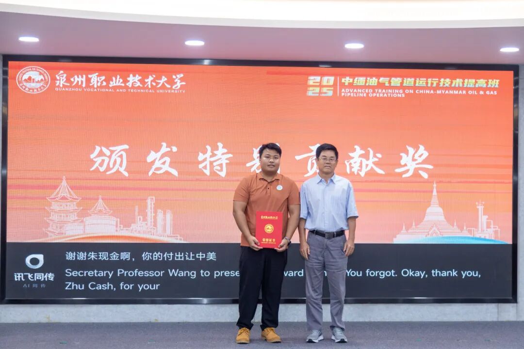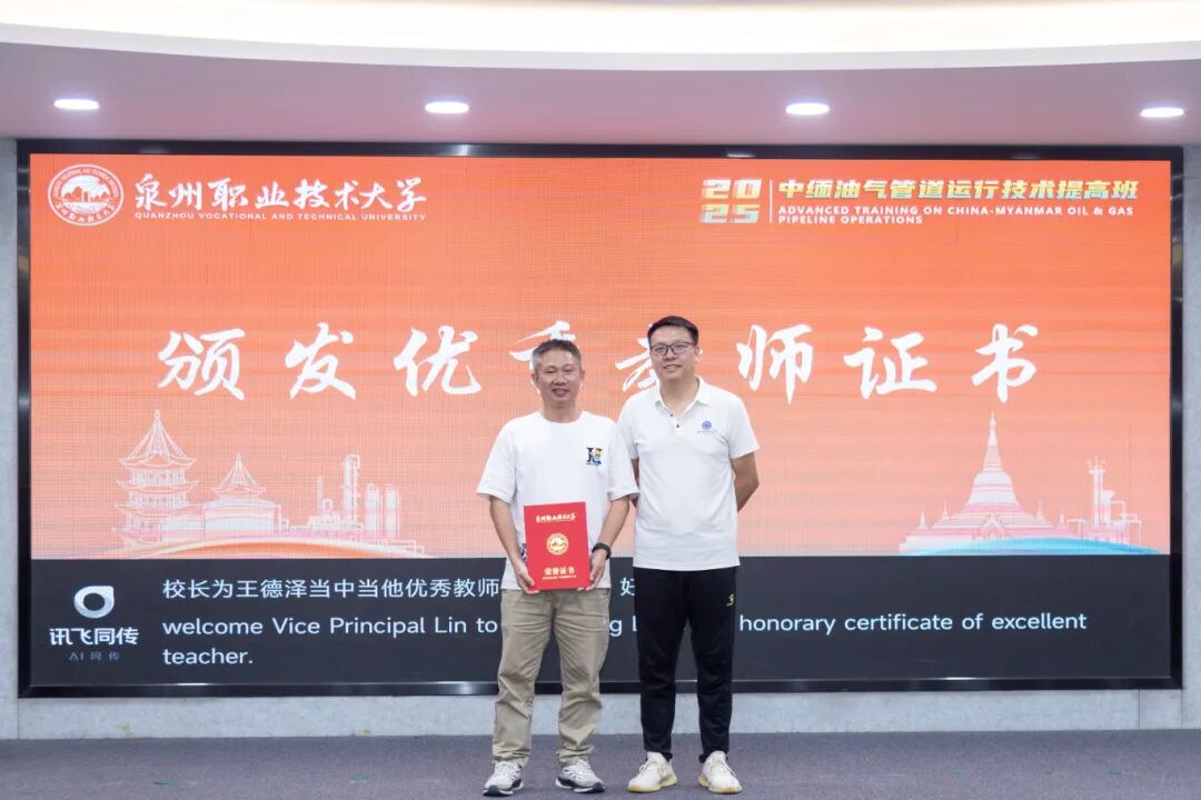 “结业不是终点,而是履职尽责的新起点。”10月14日,中缅油气管道运行技术提高班,为期近一个月的培训,在泉州职业技术大学画上圆满句号。结业仪式上,缅甸籍学员代表朱先积 (Kyuu Sai Kyi)发言表示,他们将把在泉大所学的专业知识、实操技能,转化为守护油气管道安全的实际行动。