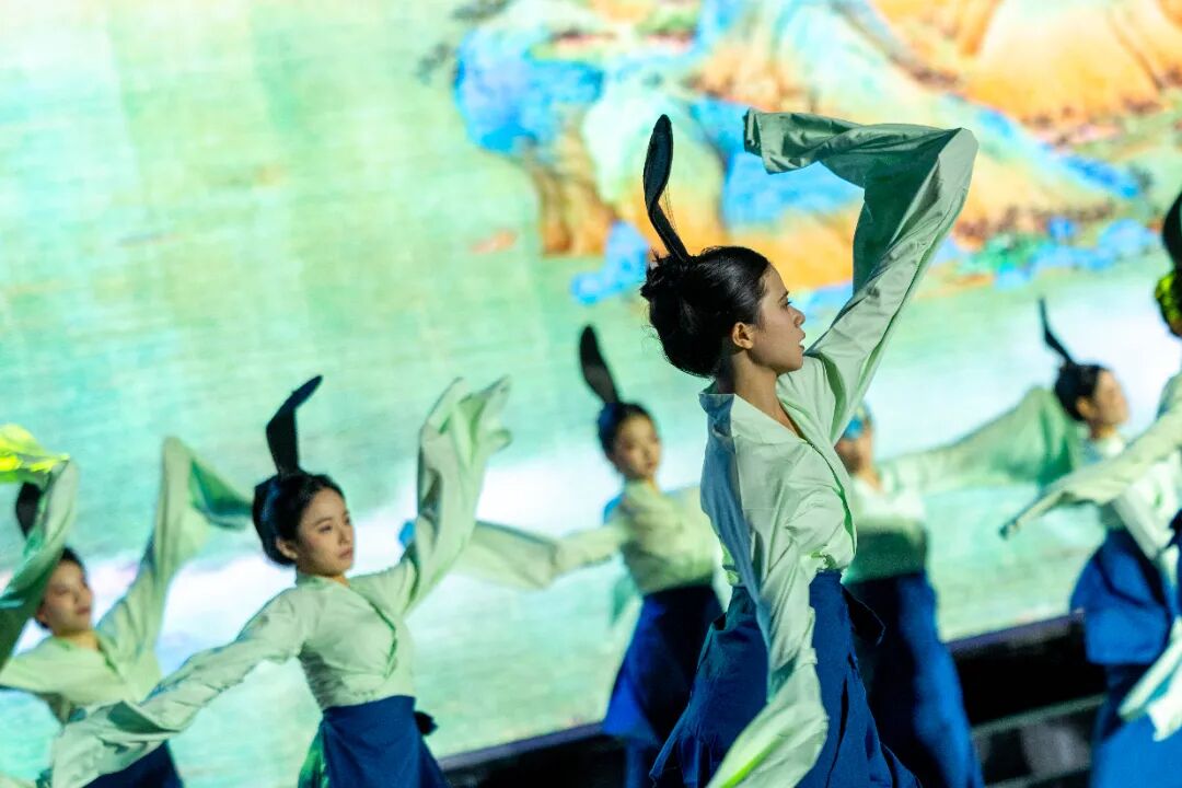 以舞作画,连接千年。教育学院的同学们化身《千里江山图》中的青绿山水,用绝美的舞姿带领我们沉浸式欣赏国宝名画的意境。一静一动之间,工匠精神与传统美学尽数展现,演绎出一场至善至美的视觉盛宴。