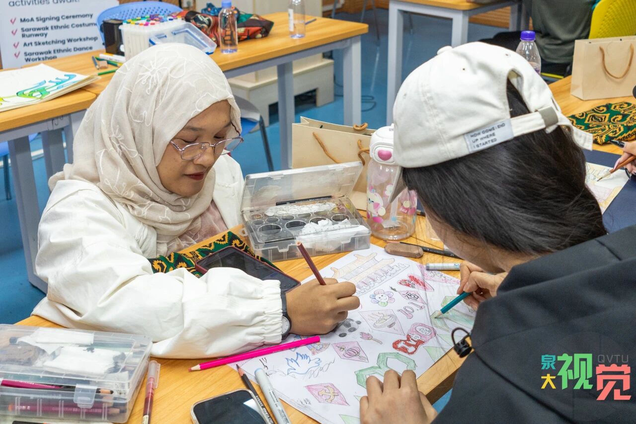 10月24日,泉州职业技术大学艺术传媒学院的教室里,颜料与炭笔整齐排列,画纸铺展就绪。一场名为马来西亚SARAWAK-CHINA ART FUSION PAINTING(砂拉越-中国艺术融合绘画)“跨文化故事”活动在此启幕,马来西亚艺术团队与服装专业学子们以笔为媒,让中马文化在笔尖相遇、交融。