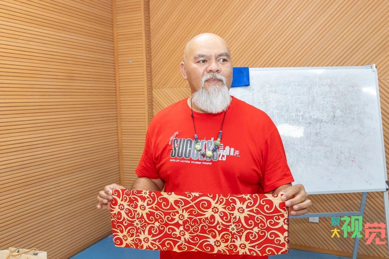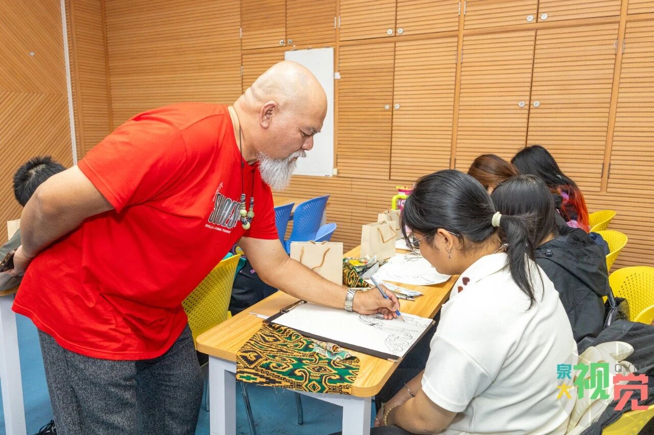 理论落地即刻见效。马来西亚艺术家Marzuki.Jamilah先生与Syahira小姐拿起画笔现场示范:“犀鸟的喙要锋利中带饱满,才显力量感”“Midin叶片用渐变绿,层次感就出来了”。暖心的是,他们还为每位学子准备了伴手礼——印着传统纹样的丝巾、特色手作饰品,让跨国情谊有了具象承载。