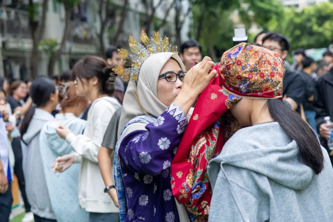 除了味蕾的享受,文化互动体验区同样人头攒动。泉州非遗簪花、剪纸体验,沙捞越串珠项链等展示,及不同国家的传统游戏,让师生在亲手体验中感受不同文化的魅力。师生们手持集章卡,穿梭于各个区域,在社交平台分享所见所闻,现场洋溢着青春的活力与跨文化交融的喜悦。“真诚希望来自中国、马来西亚、菲律宾和泰国四个国家的同学们,能利用这个活动机会,去了解他们从未接触过的世界和文化。”泰国乌汶大学教师代表TOMON LINAHATRAKUL说,愿同学们将这段经历视为个人成长的宝贵一课,让他们能过上有意义的生活,并在未来继续彼此尊重、相互欣赏。