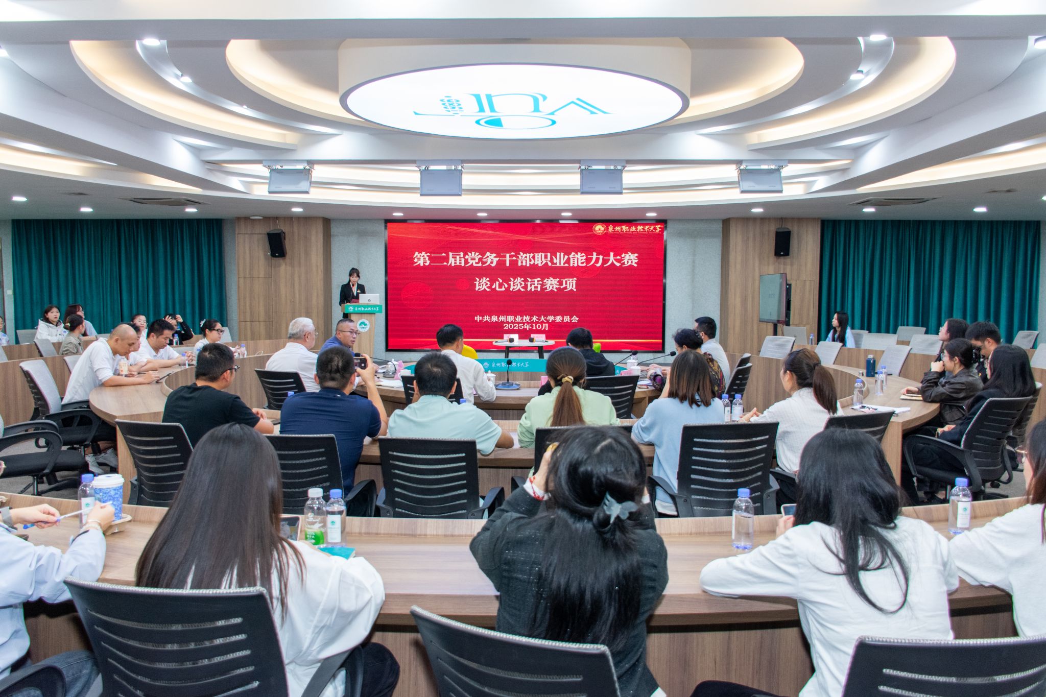 10月29日,泉州职业技术大学举行第二届党务干部职业能力大赛。学校全体党总支书记、党支部书记及组织员积极参赛。校党委书记傅志雄,党委副书记/副校长蔡金佩、校务顾问/马克思主义学院首席专家来永宝、马克思主义学院院长杜秀娟、党委组织部部长黄镇红等出席活动并担任本次大赛评委。本届比赛以“建设教育强国”为主题,设置“基础知识测试”“主题党日策划”“微党课”“谈心谈话”4个竞赛项目,各基层党组织组成12支代表队参...