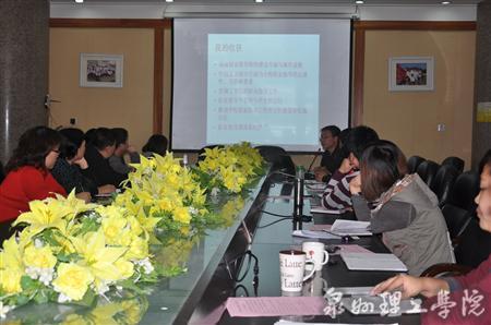 林老师首先向大家分享了他从北京人力资源与社会保障部举办的高级就业指导师研讨班中所取得的收获并针对我校的就业工作情况就“如何推动学校职业指导工作”进行了详细的解读,并对我校
