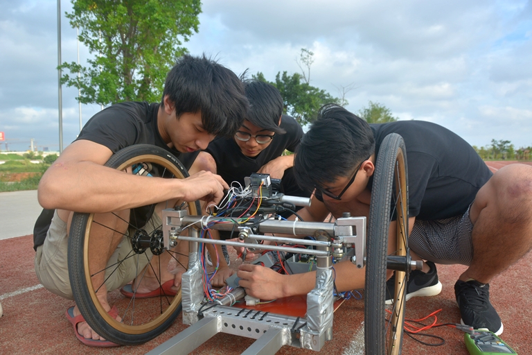 据了解,此次研发的节能汽车为大叶大学与我校学生在原本的“本田125”发动机的基础上进行改装,并加以设计,组装,经过一个月的时间开发而成。
