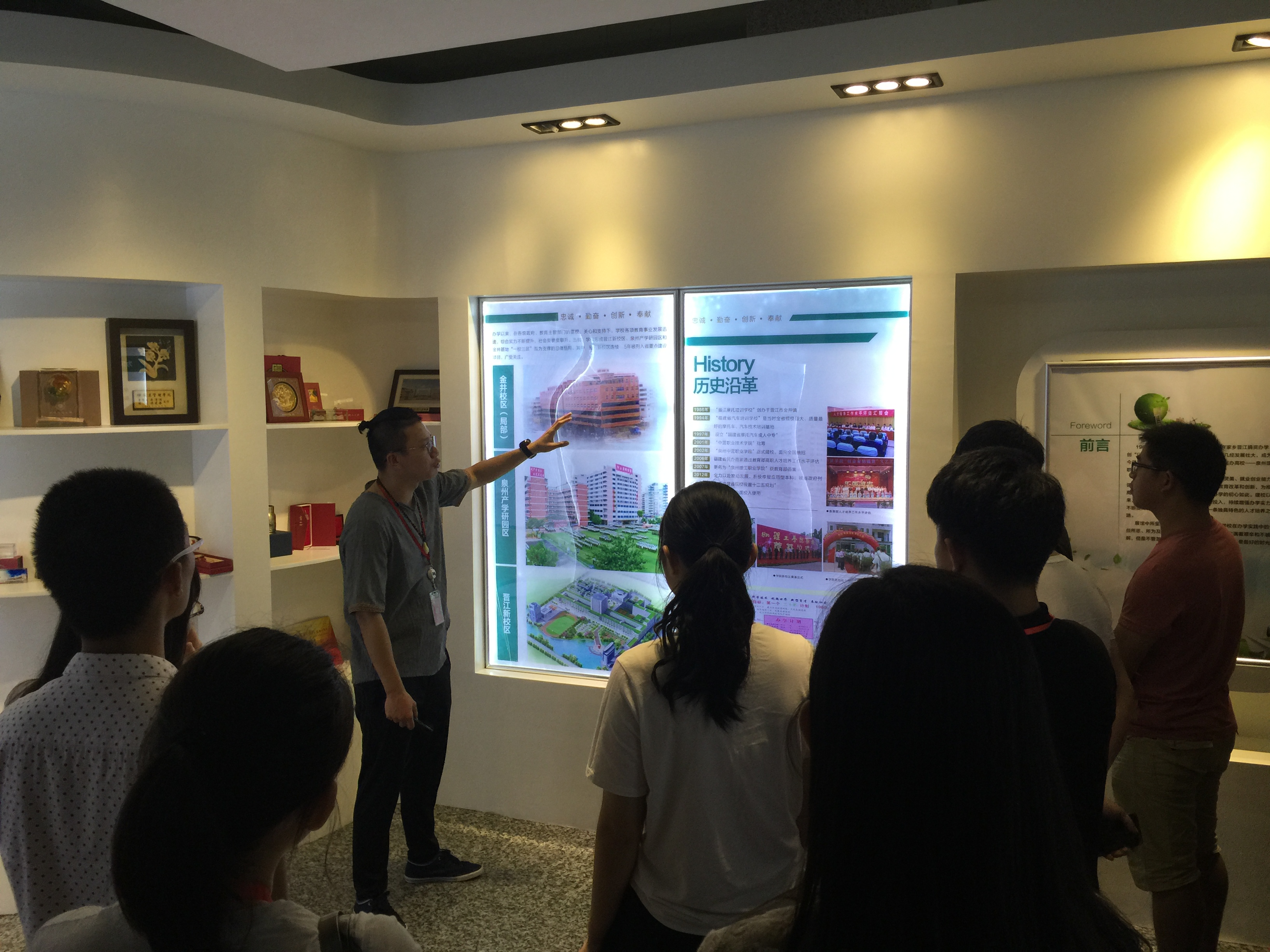 随后,副董事长助理、宣传部干事杨颖聪老师带领大家参观校园,从学校用地规划、建筑结构、设计特色到校史发展、科研成果等一一进行了导览和说明。