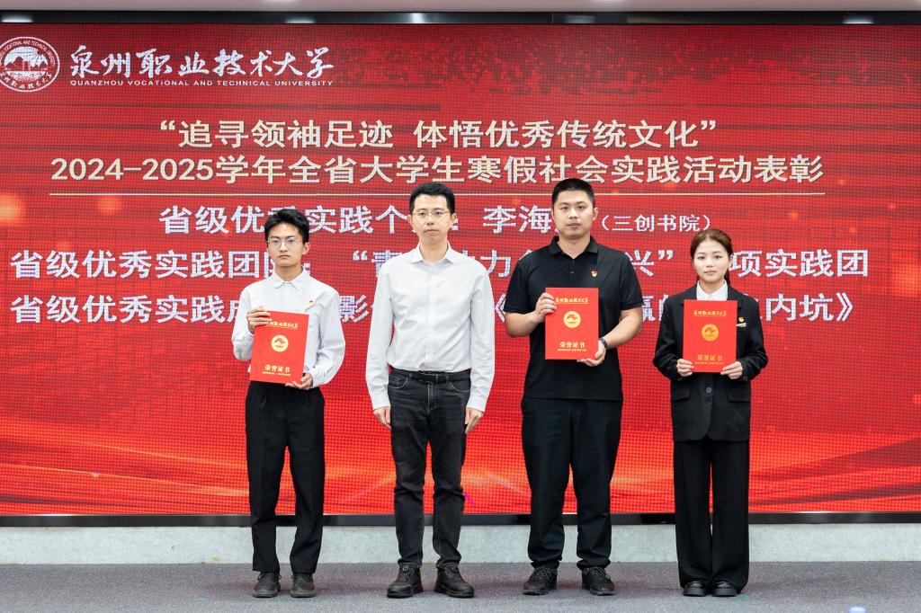 2025年寒假期间,泉州职业技术大学组织开展“追寻领袖足迹,体悟优秀传统文化”社会实践活动,全校共报备团队161支,参与实践人数达3765人。其中,校内各单位重点指导42支团队,其中包括了诠释春节“福文化”实践团1支、追寻领袖春节足迹实践团1支、体验福建海洋文化实践团3支、传承非遗民俗文化实践团17支,探究春节文化内涵和讲好春节故事实践团2支,助力乡村振兴实践团2支、数字赋能实践团3支,红色文化实践团4支,公益志愿实践团5支,其他类别实践团4支。为表彰先进,树立典型,本次寒假社会实践校级共评选了18位先进个人,4位先进工作者,12支优秀团队,12项优秀成果,其中视频作品3项,文创作品3项,调研报告3项,宣传绘本画册3项。