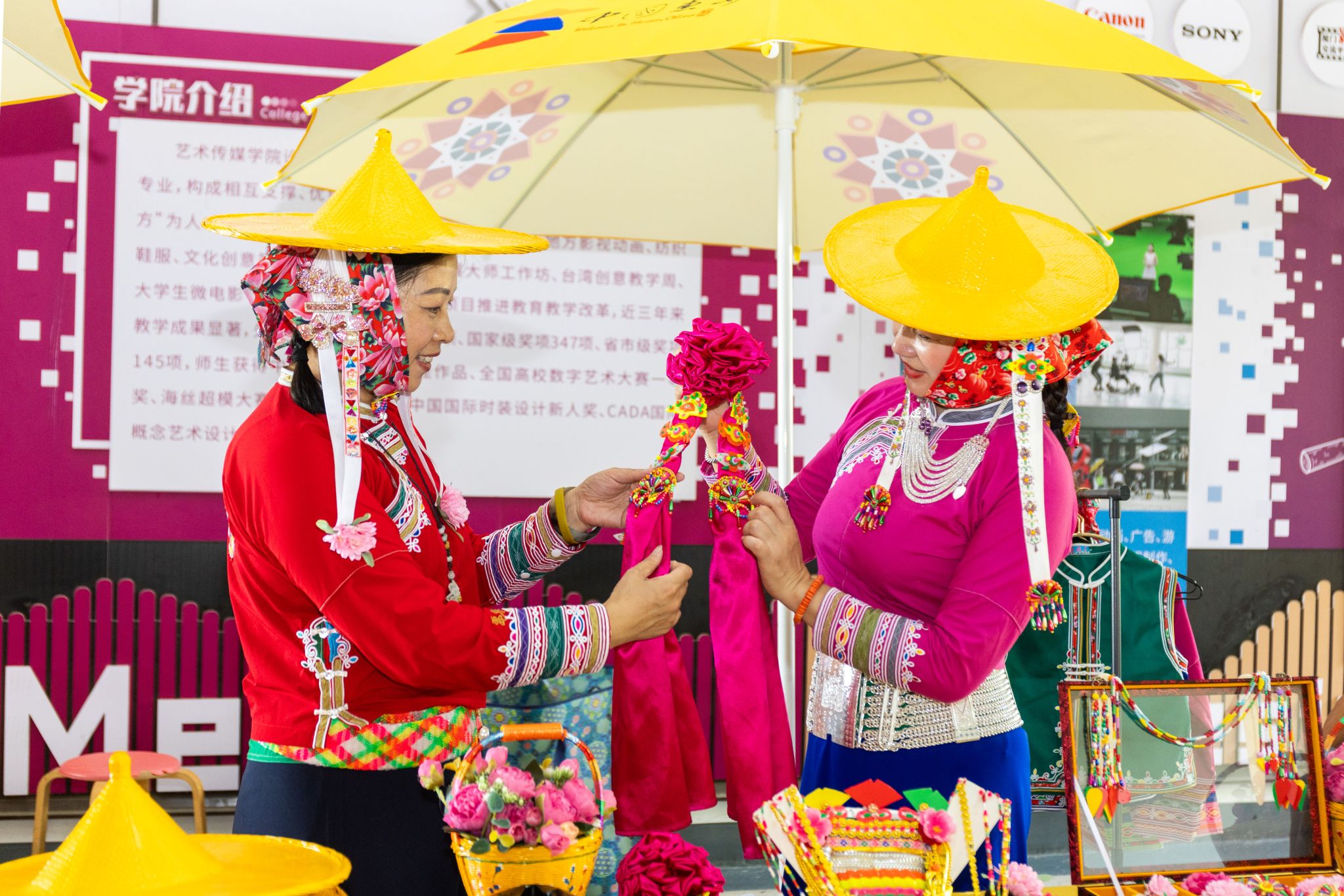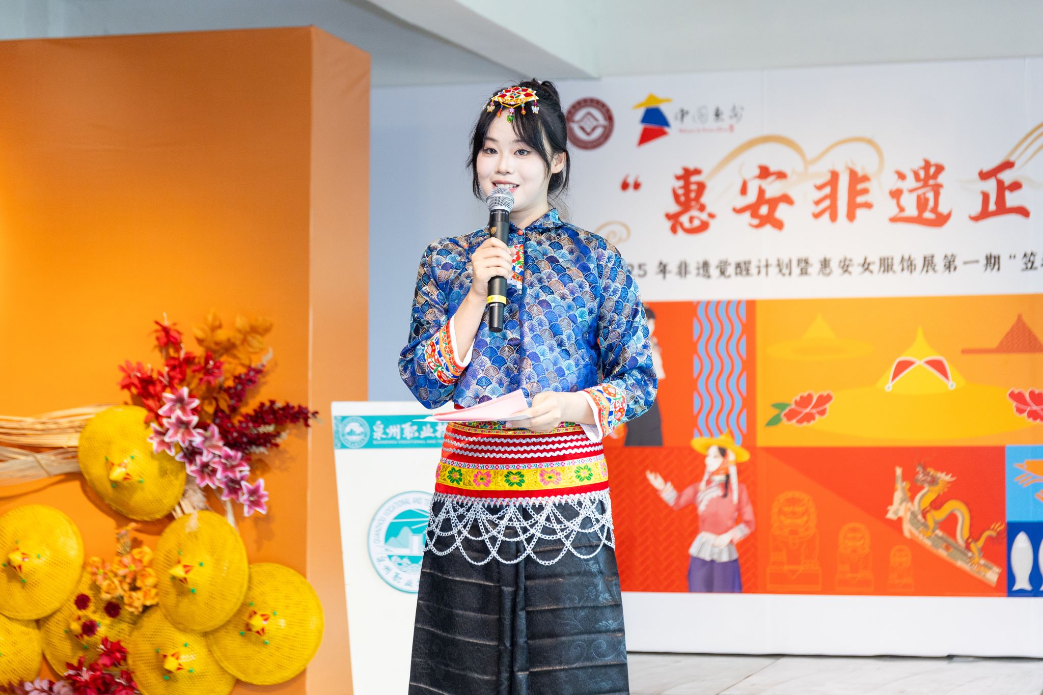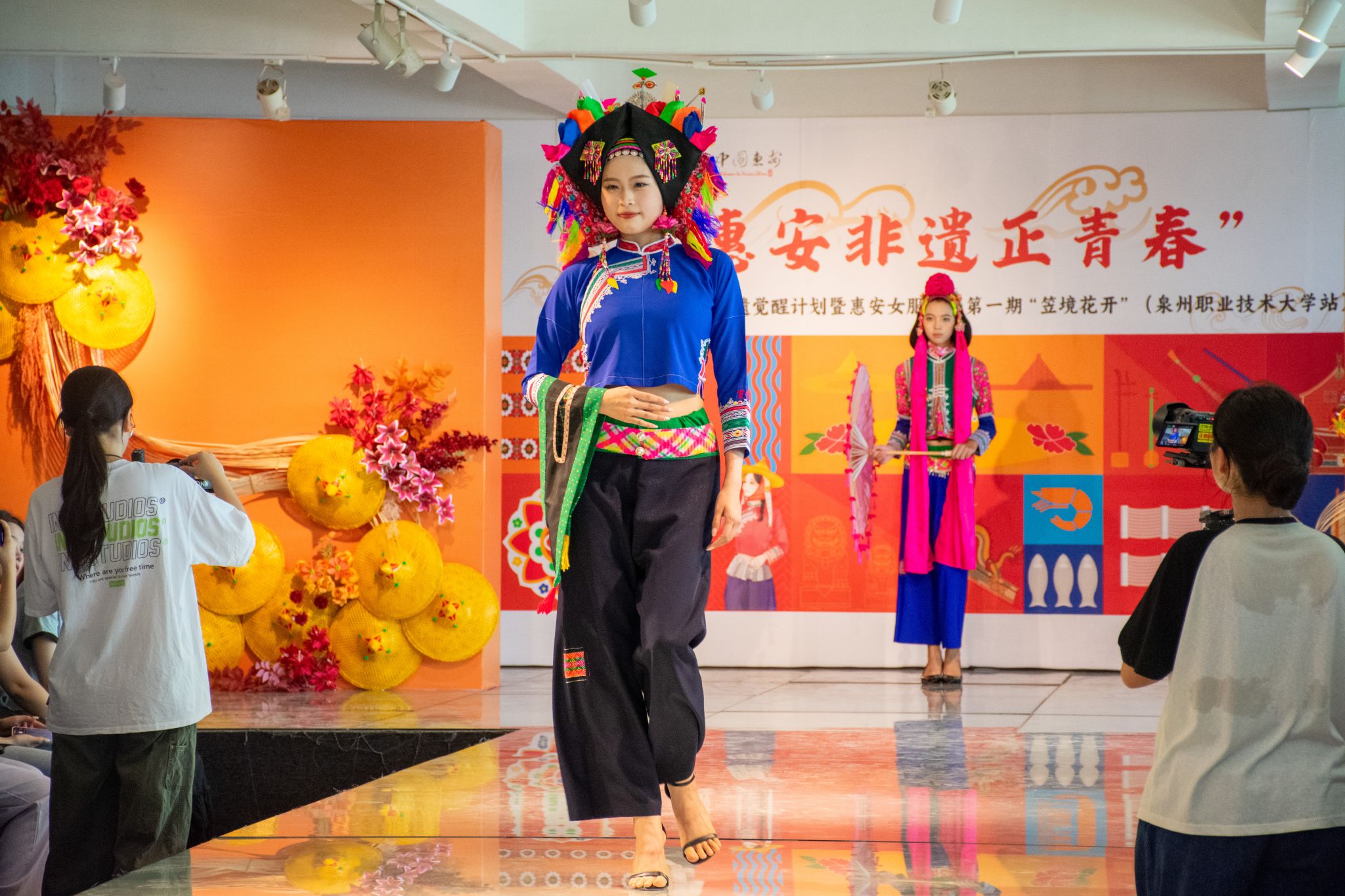 花头巾、黄斗笠、蓝短衫、宽黑裤、银腰带……这些承载着惠安海风与劳动智慧的服饰符号,不再是博物馆橱窗中的静物,而是以青春的姿态,在泉大的舞台、课堂与展区之间“活”起来。