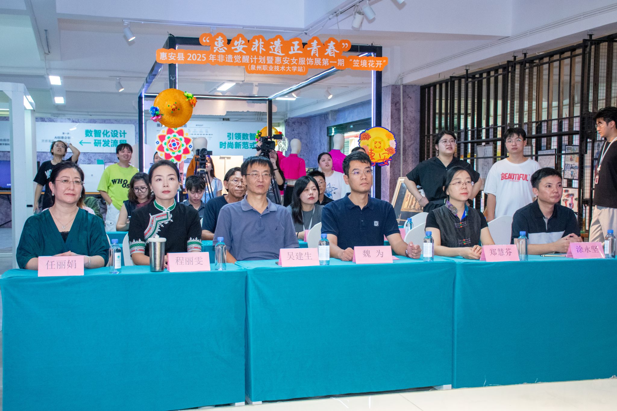 出席启动仪式的领导、嘉宾有惠安县文旅局副局长魏为,惠安县文化馆馆长程丽雯、副馆长郑慧芬,我校校务顾问吴建生、科研处处长任丽娟、教务处副处长周燕妮、学生工作处副处长朱冰梅、团委副书记曾子石,艺术传媒学院书记涂永坚、服装与服饰设计专业带头人梁军、服装与服饰设计专业主任孔雨霏与师生代表。